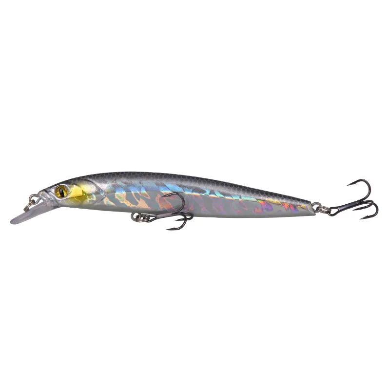 Minnow absolutamente normal. El "vidrio roto" en el color es muy pronunciado. Por si acaso, pegue los lazos. En mi opinión, los ganchos deberían colocarse en un tamaño más grande.