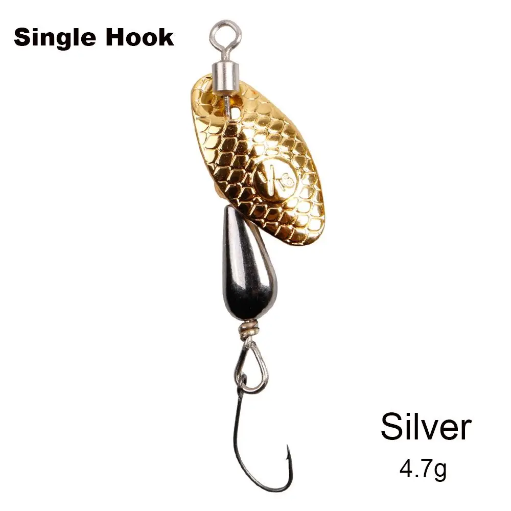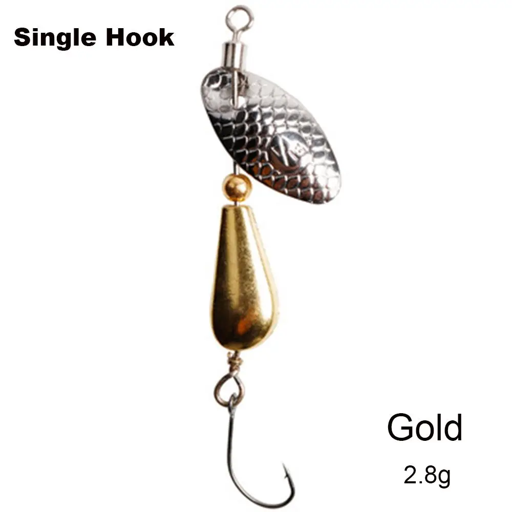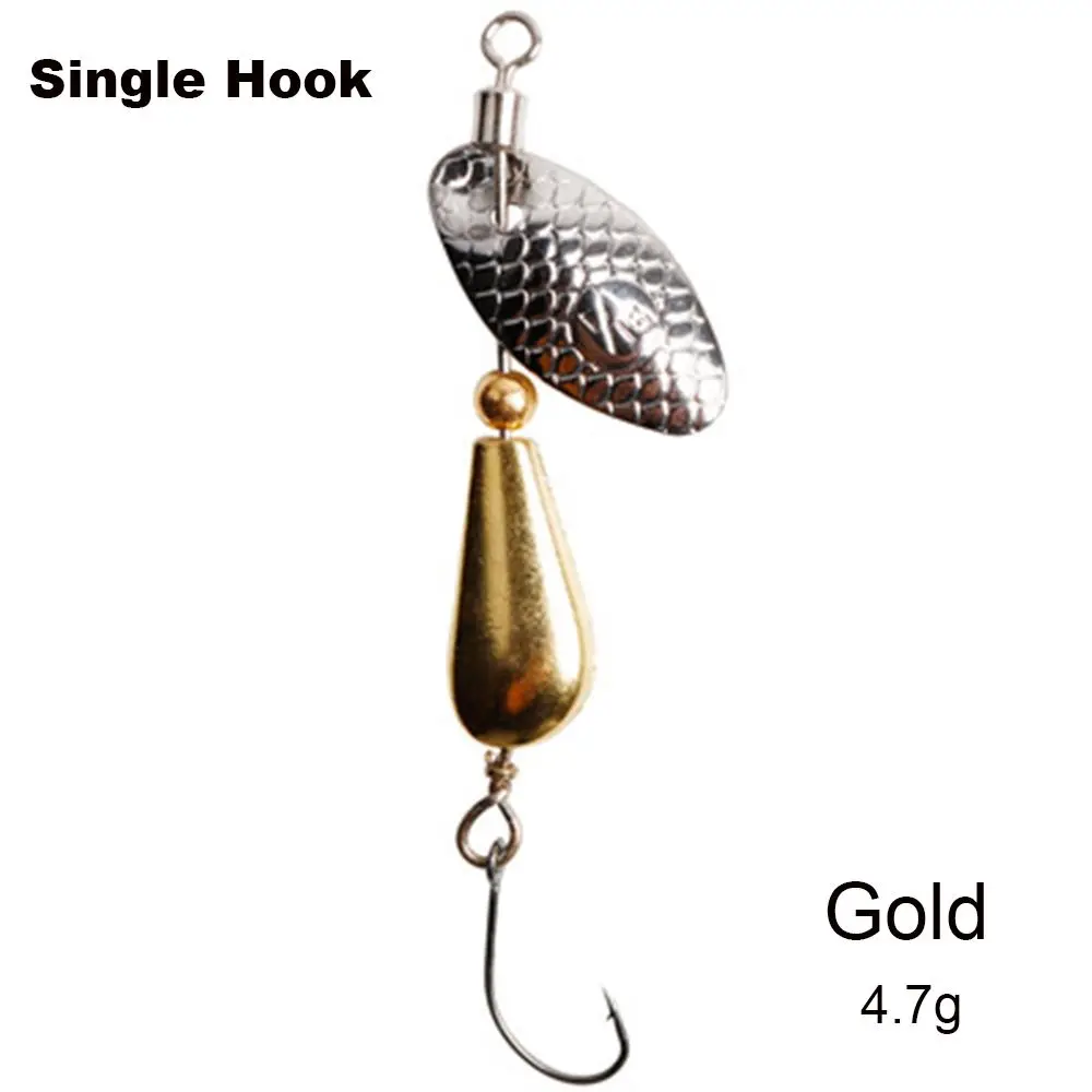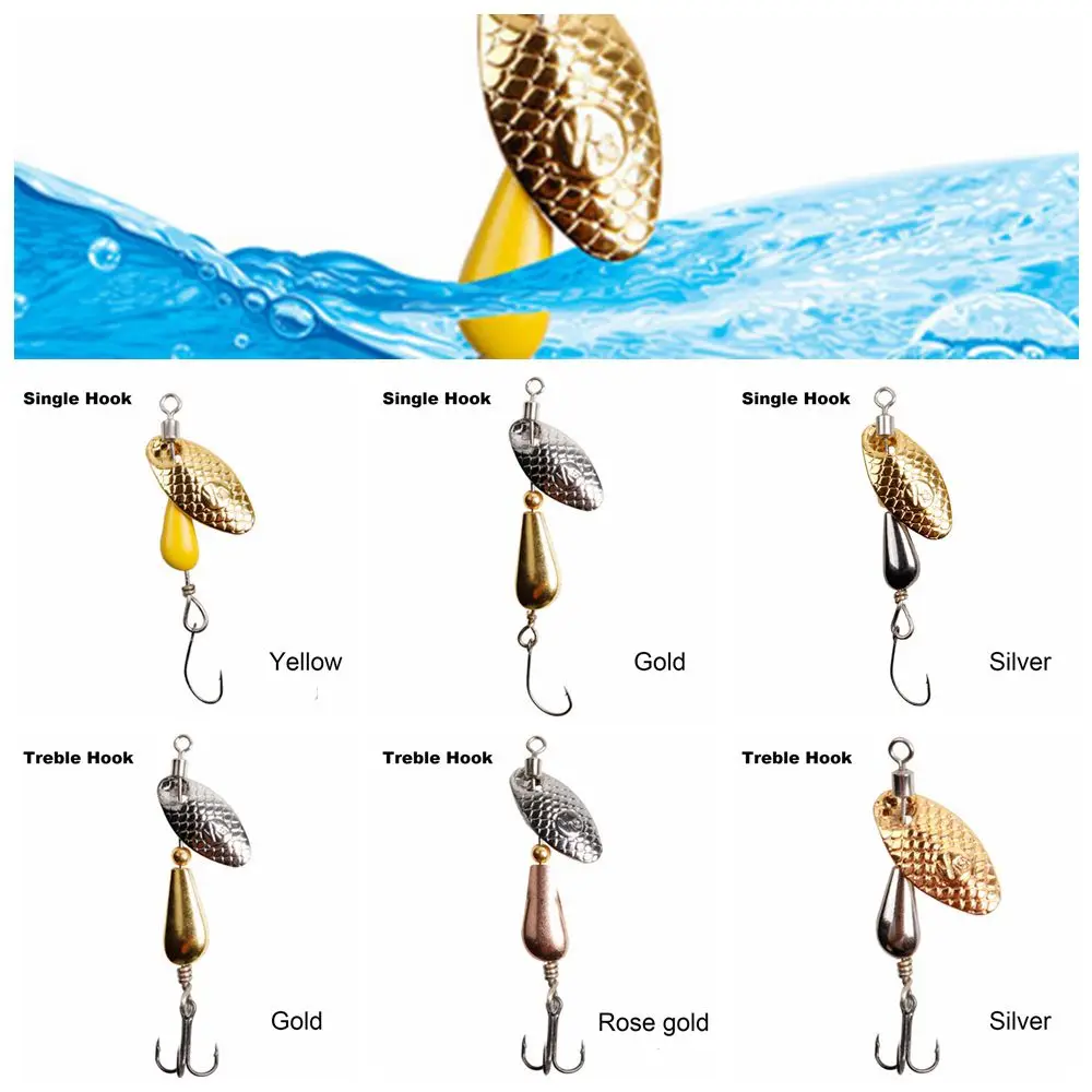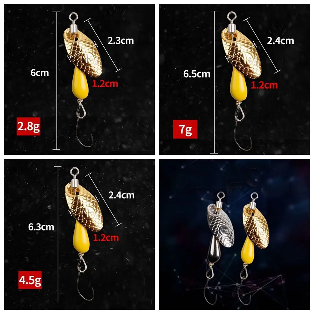 Material: Metal Hooks: Single Hook/Treble Hook Features: Rotating Sequins Sinking or Floating: Sinking Position: Ocean Boat Fishing; Ocean Beach Fishing; Lake; River Target Fish: Crap, Bass, Pike, Perch, Yellow check, Chub Suitable for:Christmas gifts Weight:2.8g 4.5g 7g Package Included: 1PC Fishing Lure.