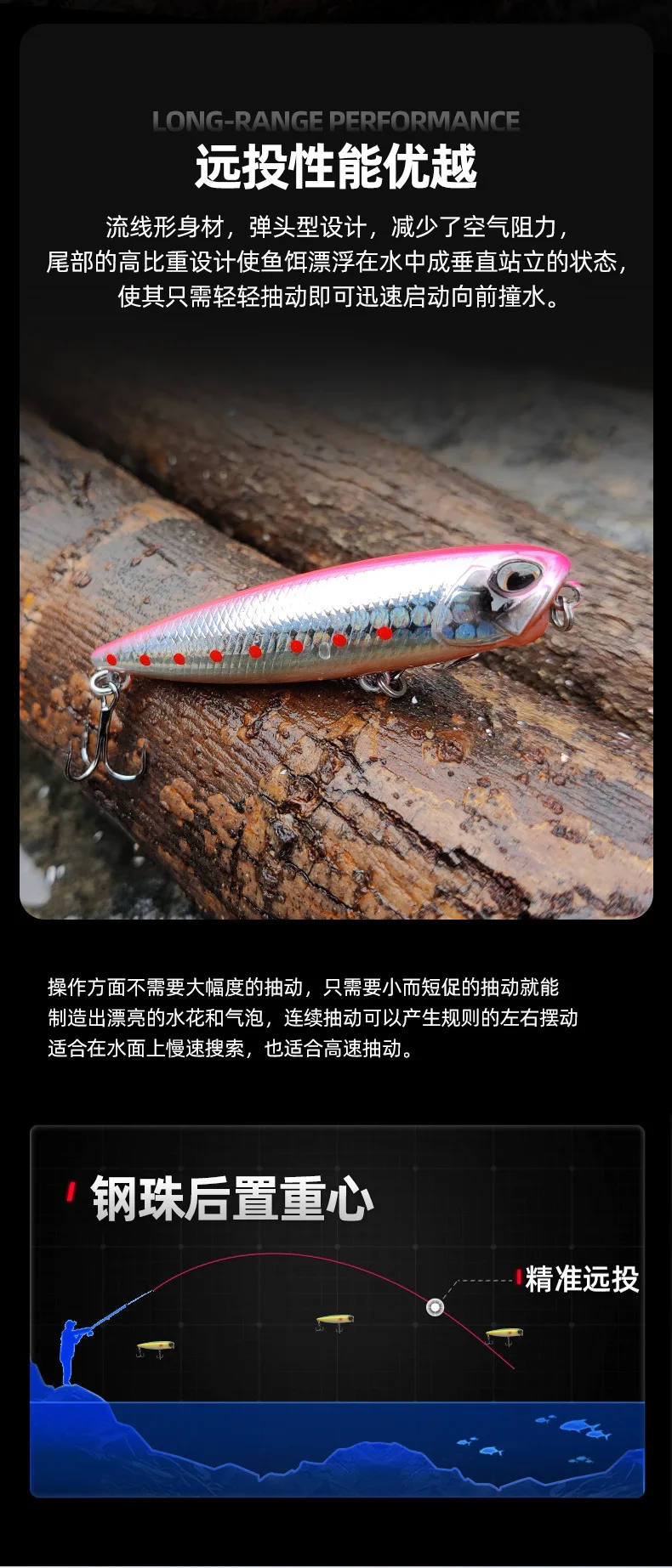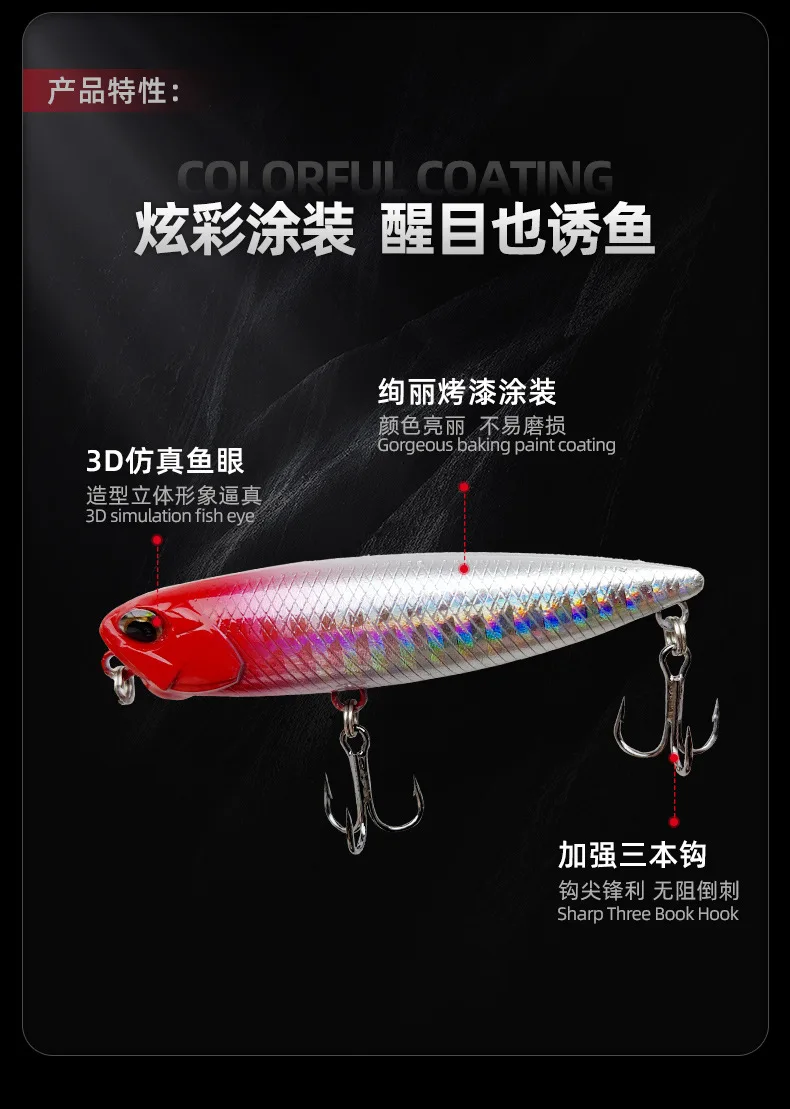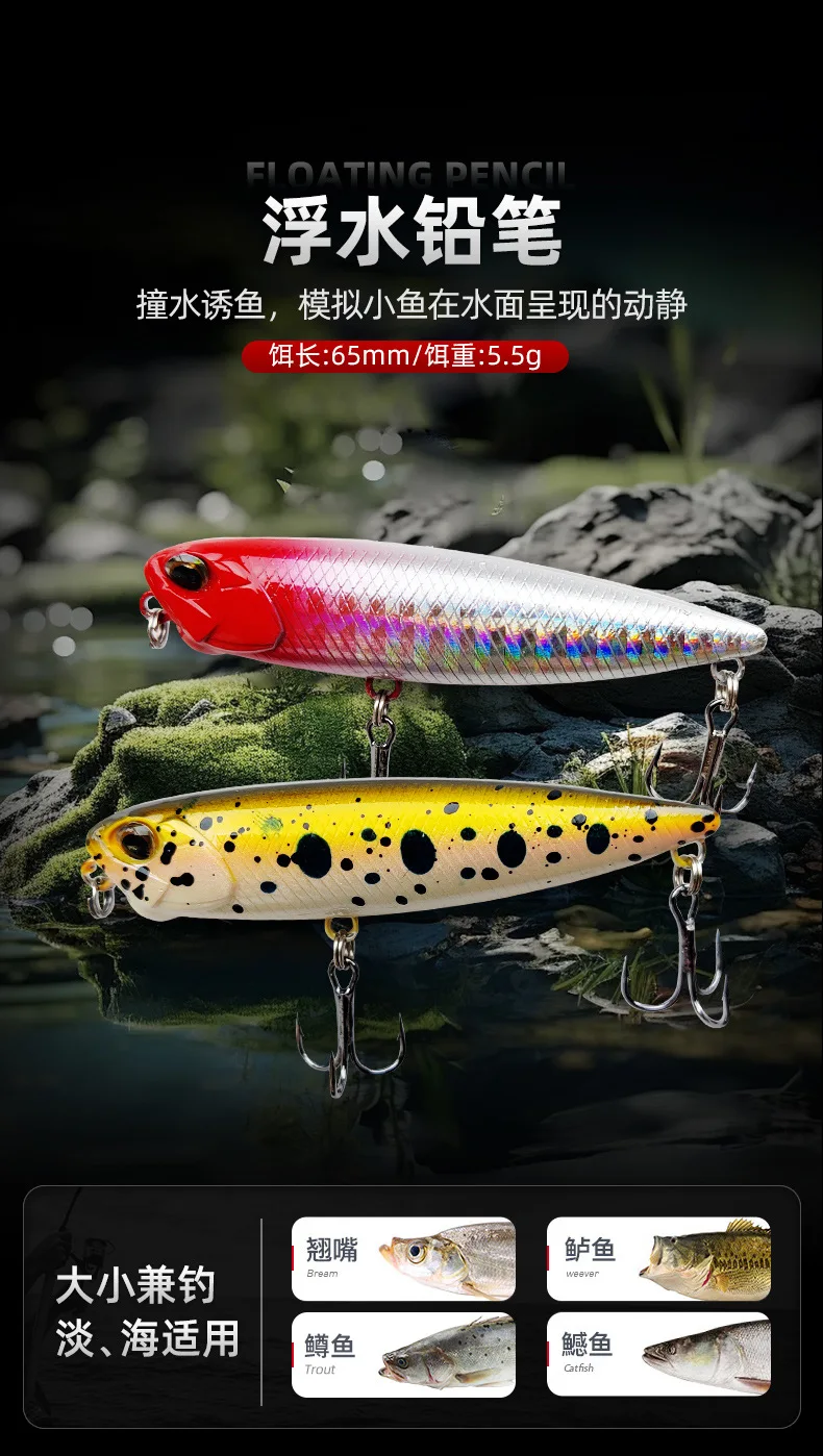 Señuelo de pesca con lápiz flotante, 5,5g, Topwater, Crankbait, cebos duros...