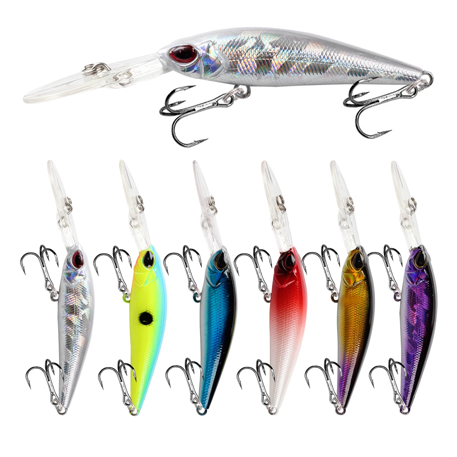 10 Uds Minnow señuelo de Pesca lubina cebo duro Artificial Wobblers Crankbait ojos 3D cebos de plástico Pesca de peces