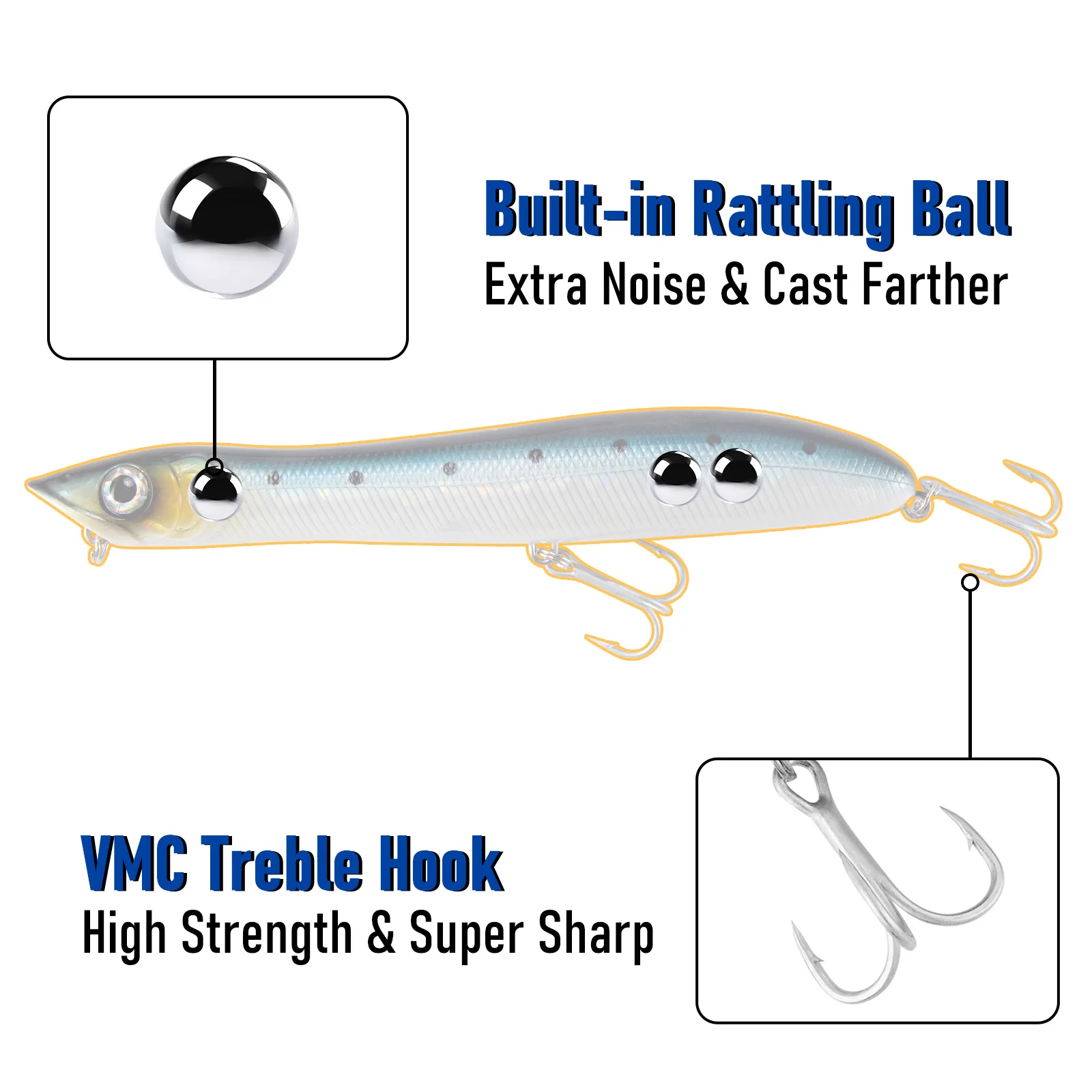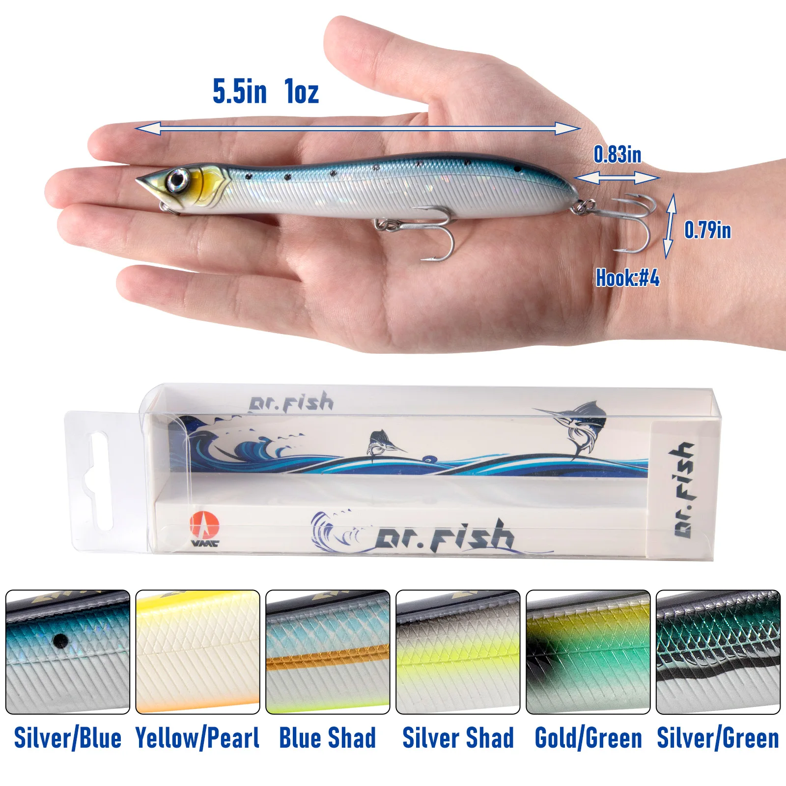 Dr.Fish Surface Lure es un señuelo de superficie de fundición larga que tiene una merecida reputación de ser uno de los bonitos señuelos de lubina.Es un señuelo "imprescindible" para cualquier pescador afilado y el señuelo a menudo atrapará cuando otros señuelos de superficie no provocan enganches.