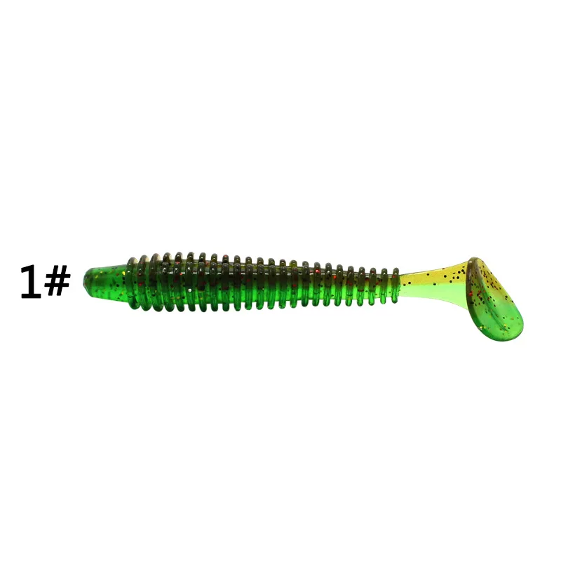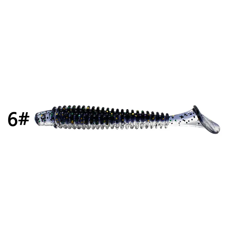 5-10 unids/lote señuelo de Pesca suave 50mm/0,9G doble Color espiral T cola cebos de silicona Jig Wobbler gusano suave Pesca cebo de Pesca