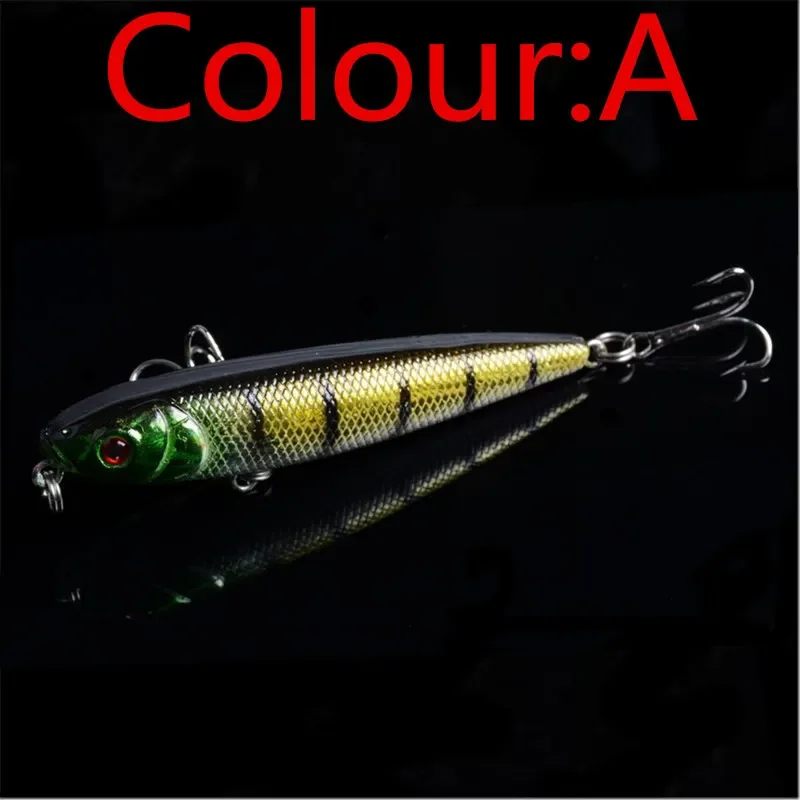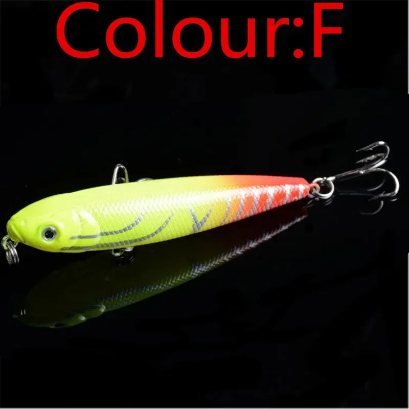 1Pcs Top water fishing lure 8cm 8.5g Pencil baits artificiais hard bait swimbait crankbait pesca Bass Fishing Tackle FA-314Bait type: pencil baitLength: 80mmWeight: 8.5gColor: 7 different colorsDiving depth: top waterHook: 2* sharp treble hookMaterial: ABS plasticpacking list:1*lures
