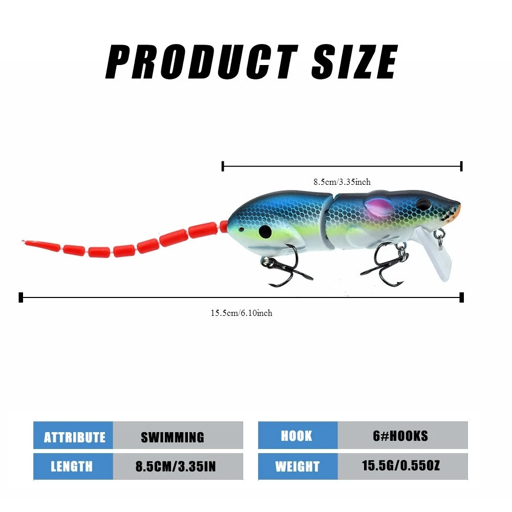 Señuelo de ratón de 15,5 CM, señuelo de pesca de ratón de plástico Artifici...