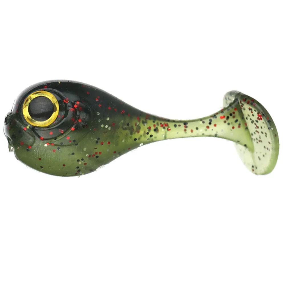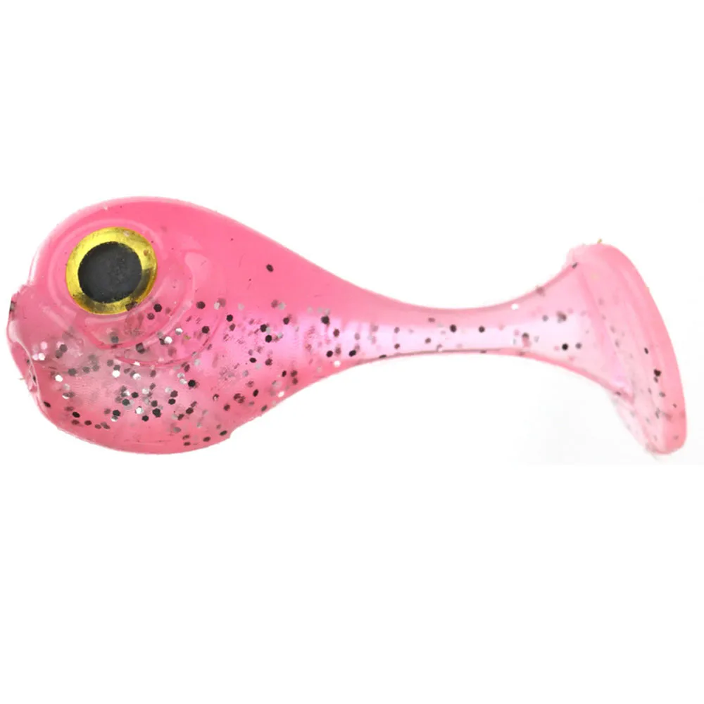 5 unids/lote de señuelo suave de cabeza grande 3 ojos d 4 cm / 3g cebos artificiales de ballena pequeña de silicona aparejos de pesca de gusano de dos colores realistas