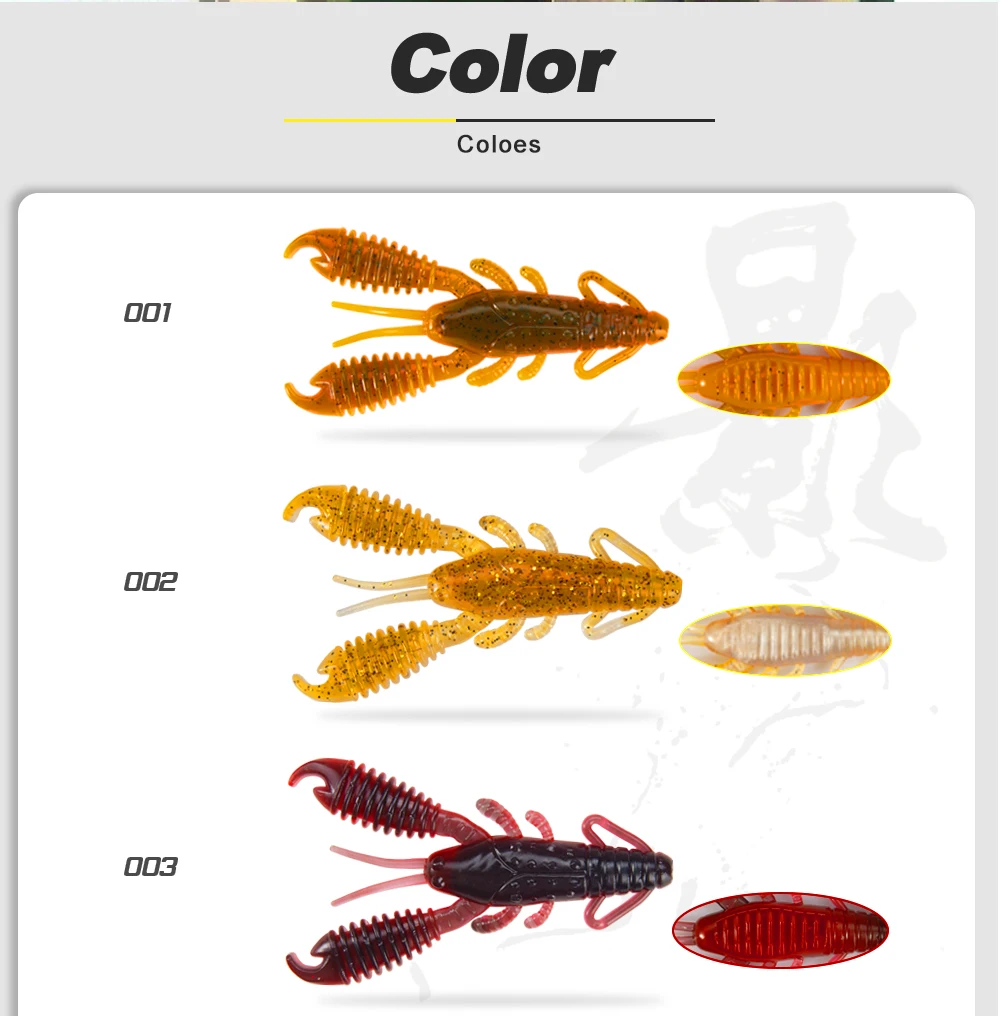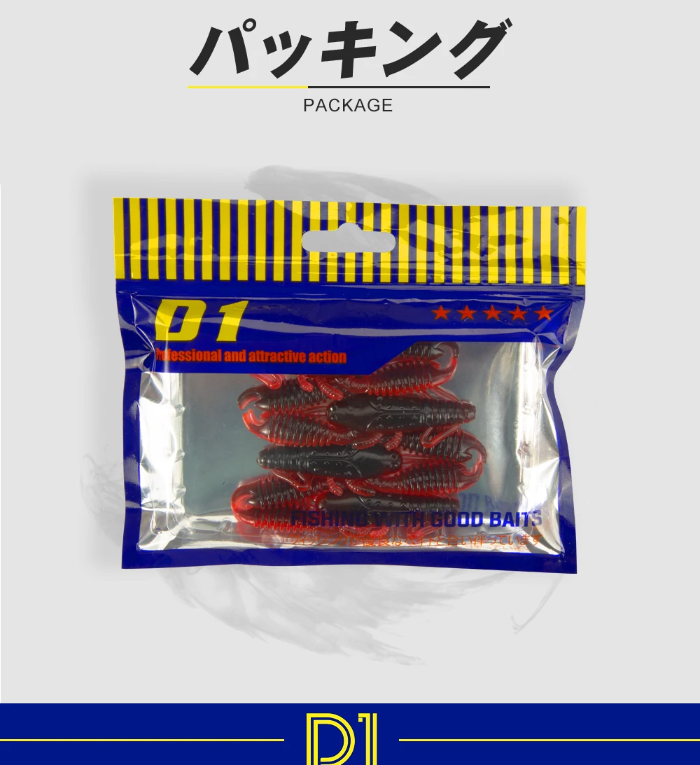Señuelos blandos de camarón D1, cebo Artificial Swimbait de 4 piezas y 76mm, cebo de pesca, Wobblers de agua dulce para perca, aparejos de pesca de lubina DT2012