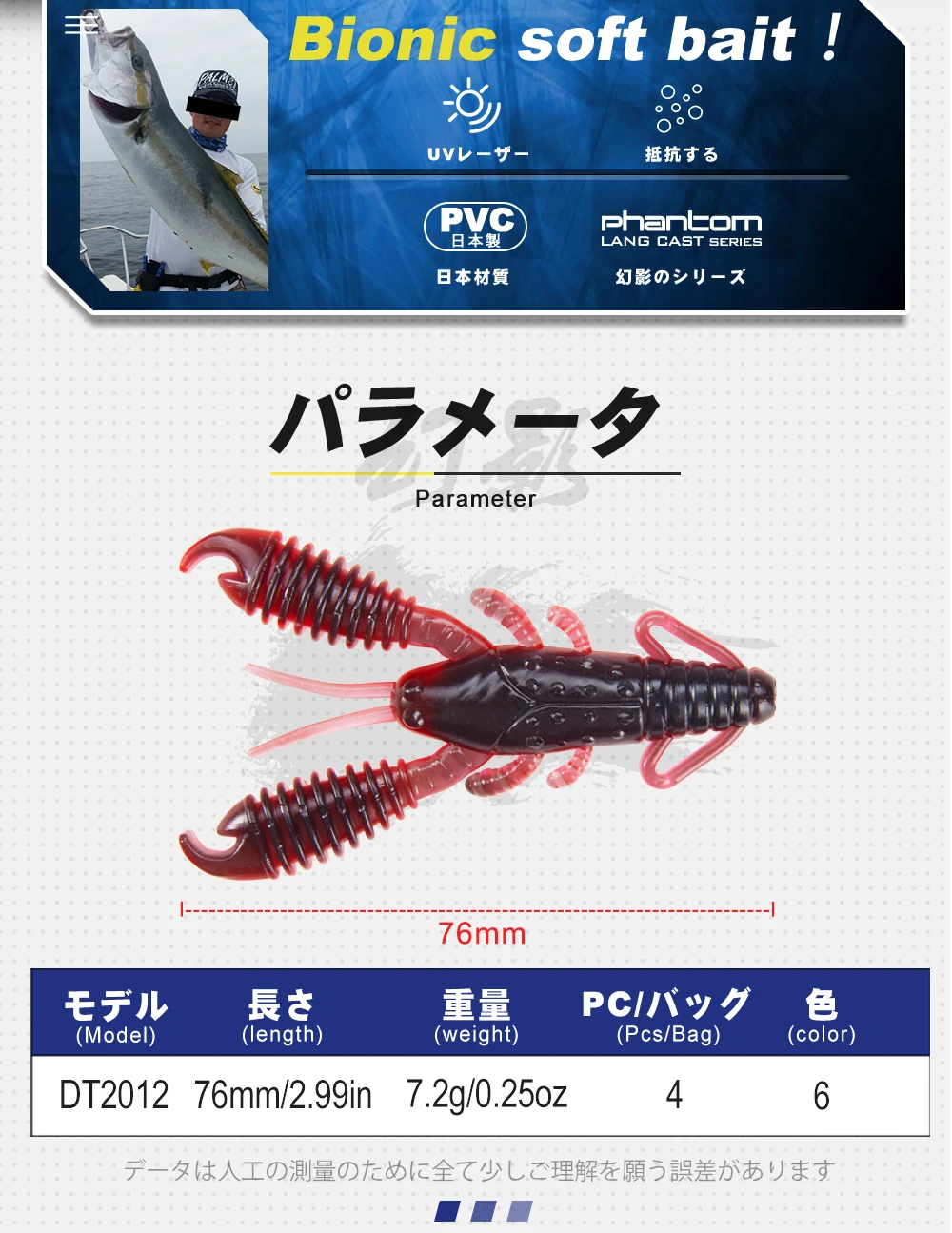 Señuelos blandos de camarón D1, cebo Artificial Swimbait de 4 piezas, 76mm, Wobblers de agua dulce para perca, lubina, aparejos de Pesca DT2012