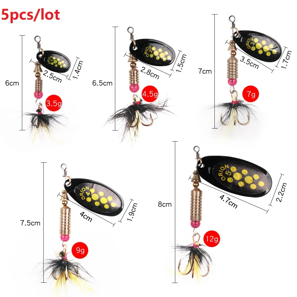 1-5 unids/lote señuelos de Pesca Spinner 3,5G-12g Jig cuchara de lentejuelas de Metal Wobblers CrankBaits trucha con anzuelos de plumas para Pesca de carpa