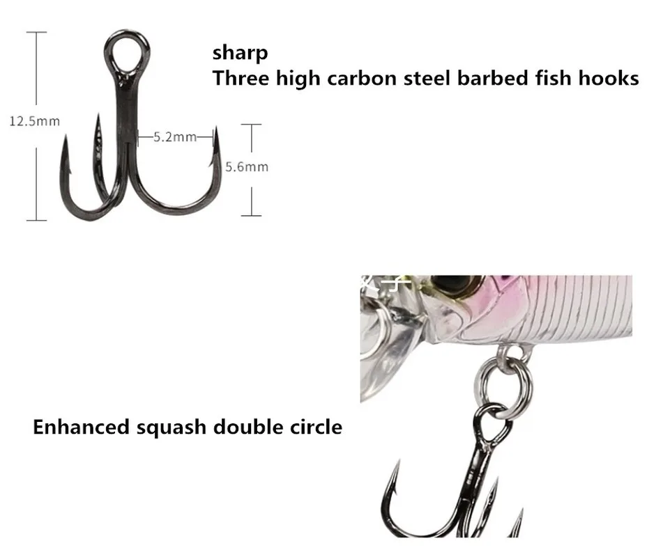 6. Bolas de metal: Bolas de acero inoxidable en el interior, para mantener el equilibrio del señuelo de pesca, para la mayor distancia de lanzamiento.