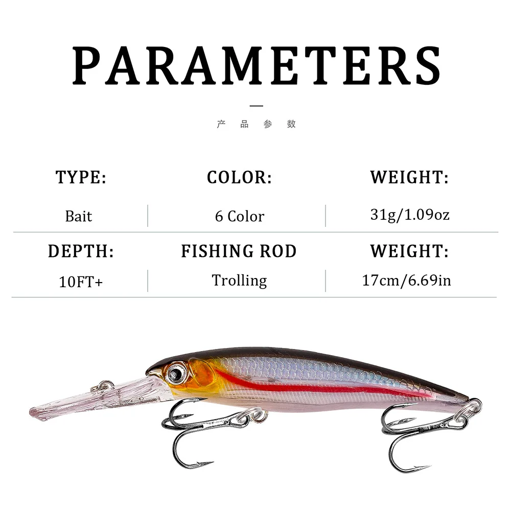 Señuelos de Pesca de pececillos modelo japonés, 1 piezas, 17cm, 31g, Jerkbait, Lucio, Carkbait, Wobblers, Swimbait, cebo profesional