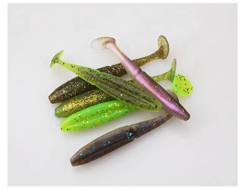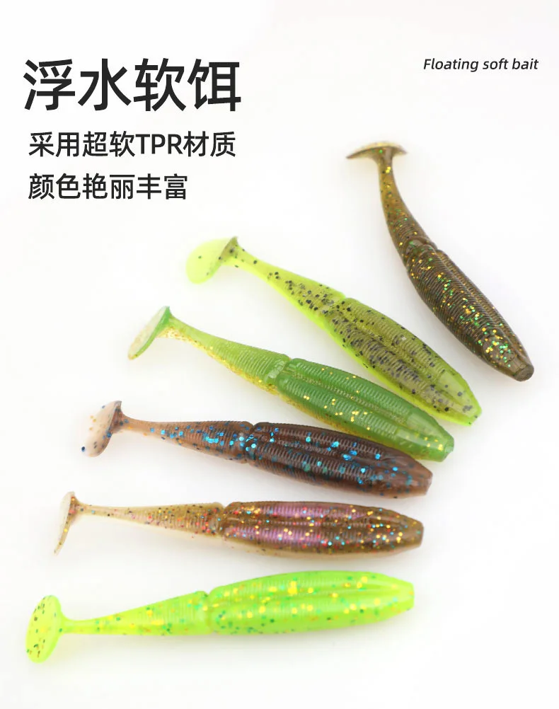 SWOLFY 8 Uds TPE t-tail señuelo de pesca suave 3,5g/75mm flotante Swimbait Wobbler cebo Artificial aparejos de pesca de lubina de silicona