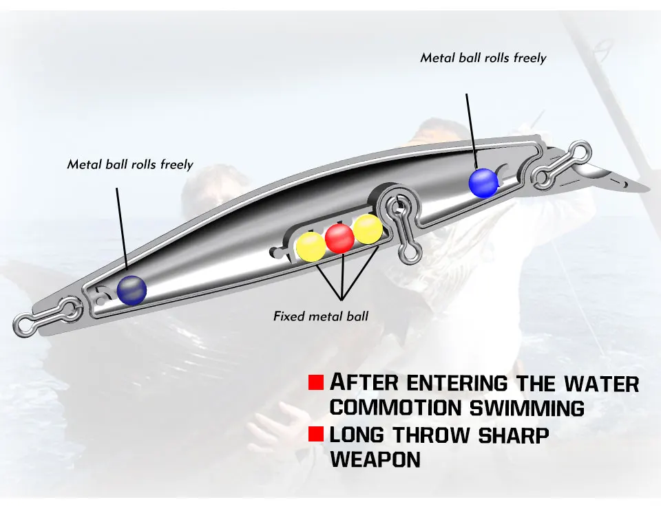 5.Bolas de Metal: Para mantener el equilibrio del señuelo de pesca, para el lanzamiento a distancia más lejana.