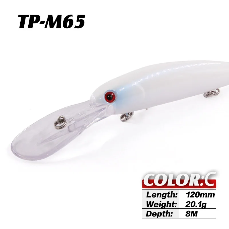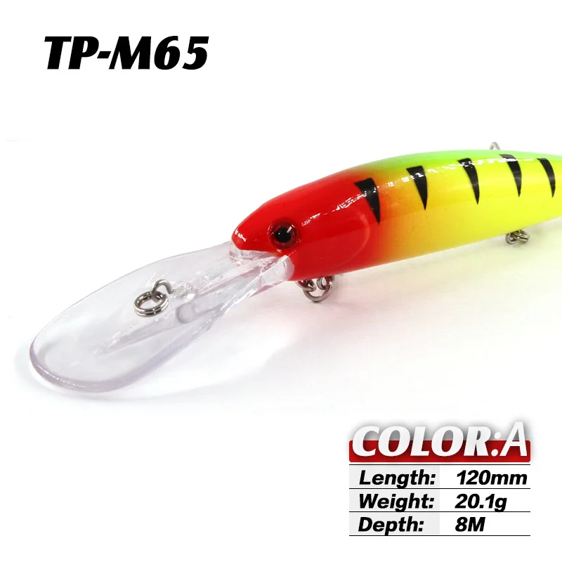 A primera vista, el señuelo parece estar bien hecho; veamos cómo se comporta en el agua. Por primera vez entre los fabricantes chinos, el embalaje indica no solo el peso sino también la profundidad, este es de 8m.