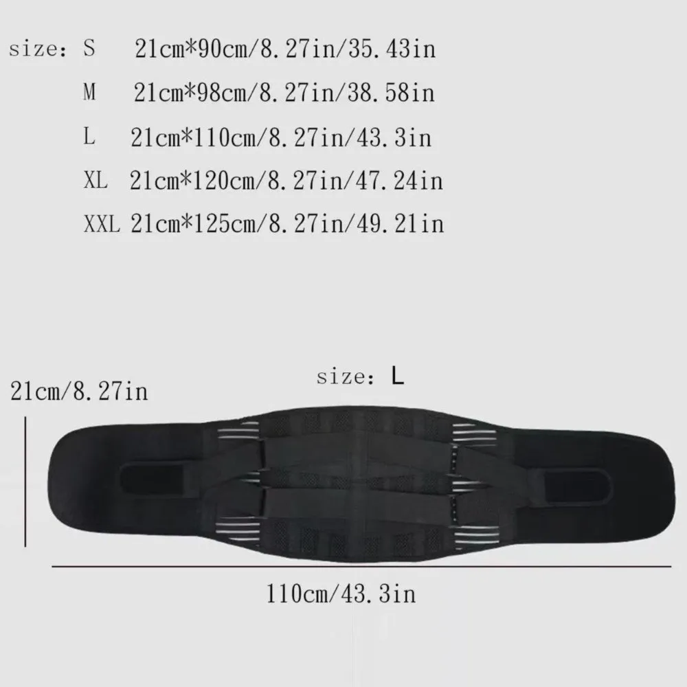 Package Includes:1pc Waist Braces S 21x90cm(8.27x35.43in),M 21x98cm(8.27x38.58in),L 21x110cm(8.27x43.31in),XL 21x120cm(8.27x47.24in),2XL 21x125cm(8.27x49.21in)