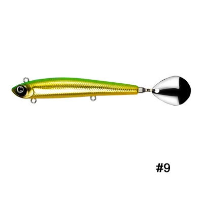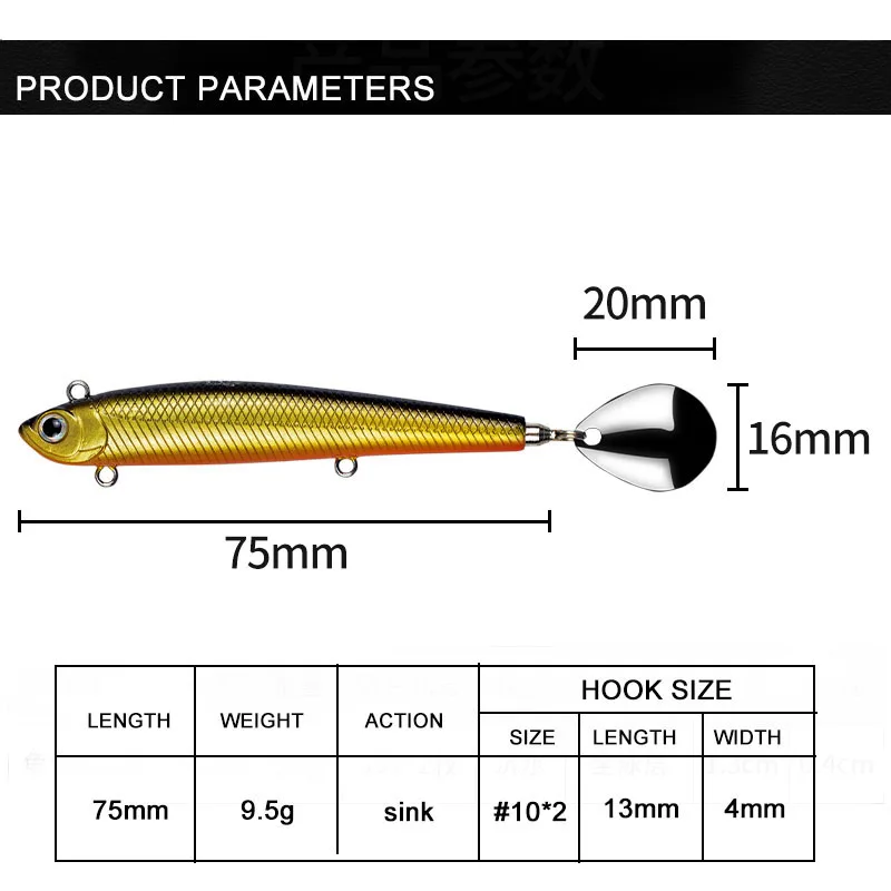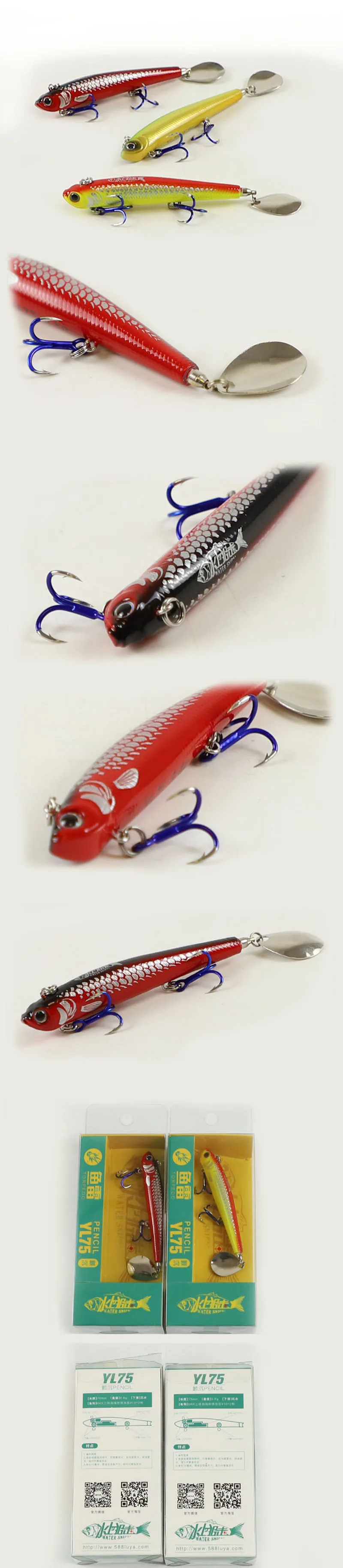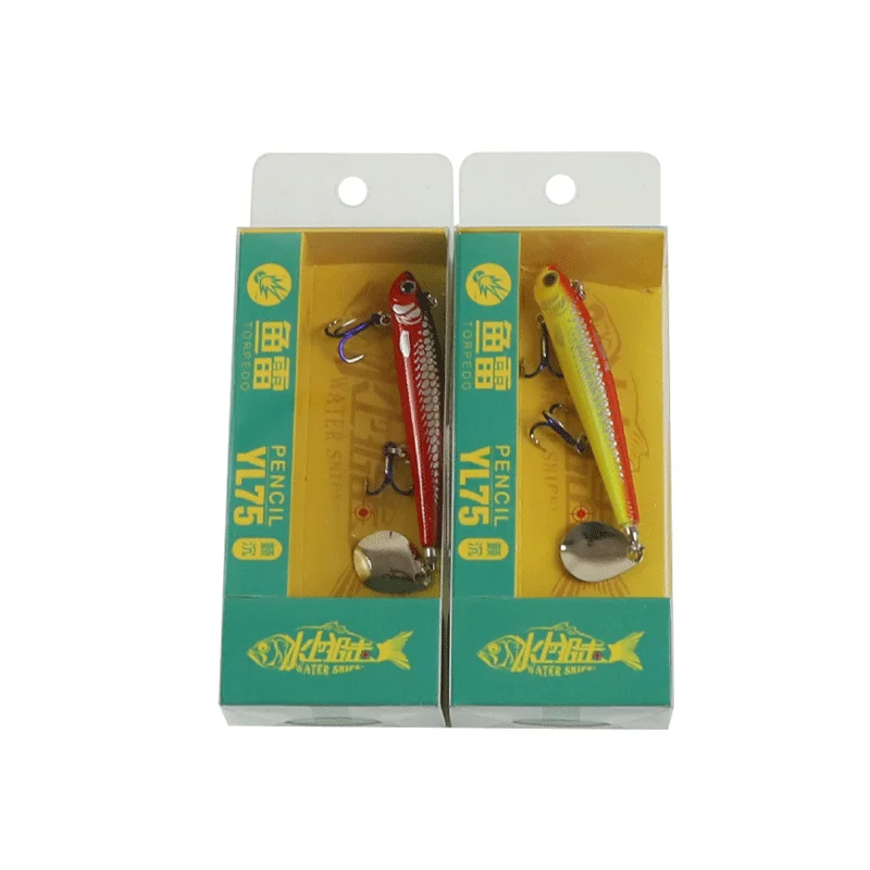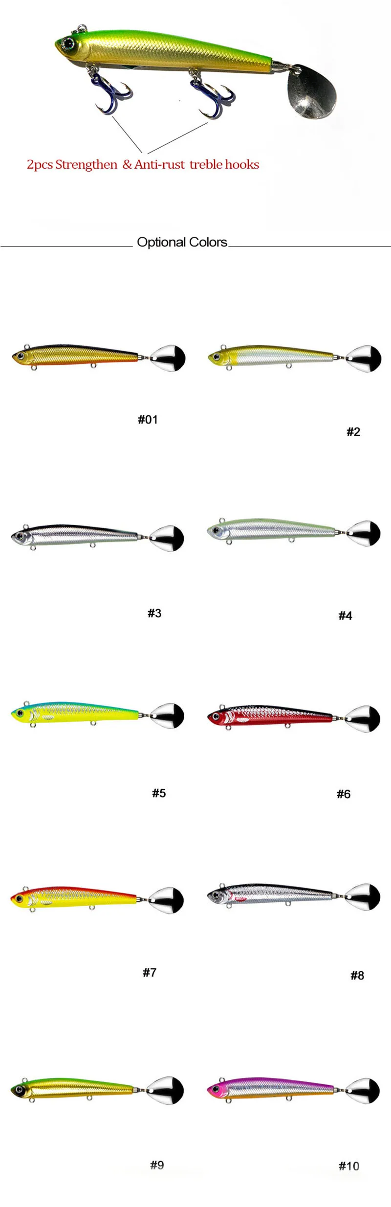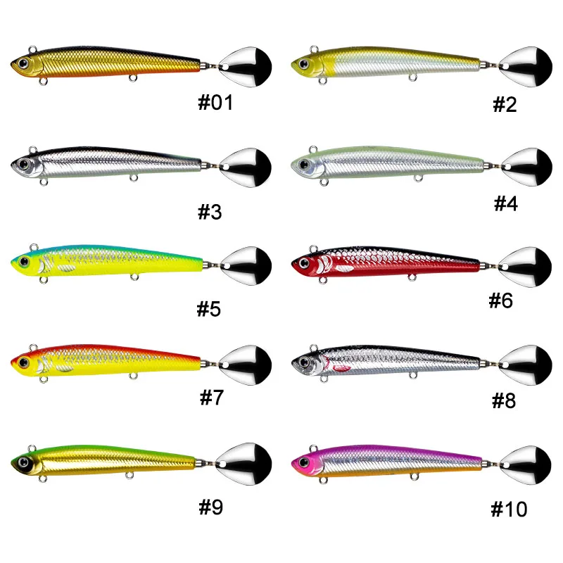 Cebos duros de pesca artificiales, 9,8g, 75mm, señuelo de lápiz hundido con cuchara giratoria, cola, anzuelos triples, aparejos de pesca