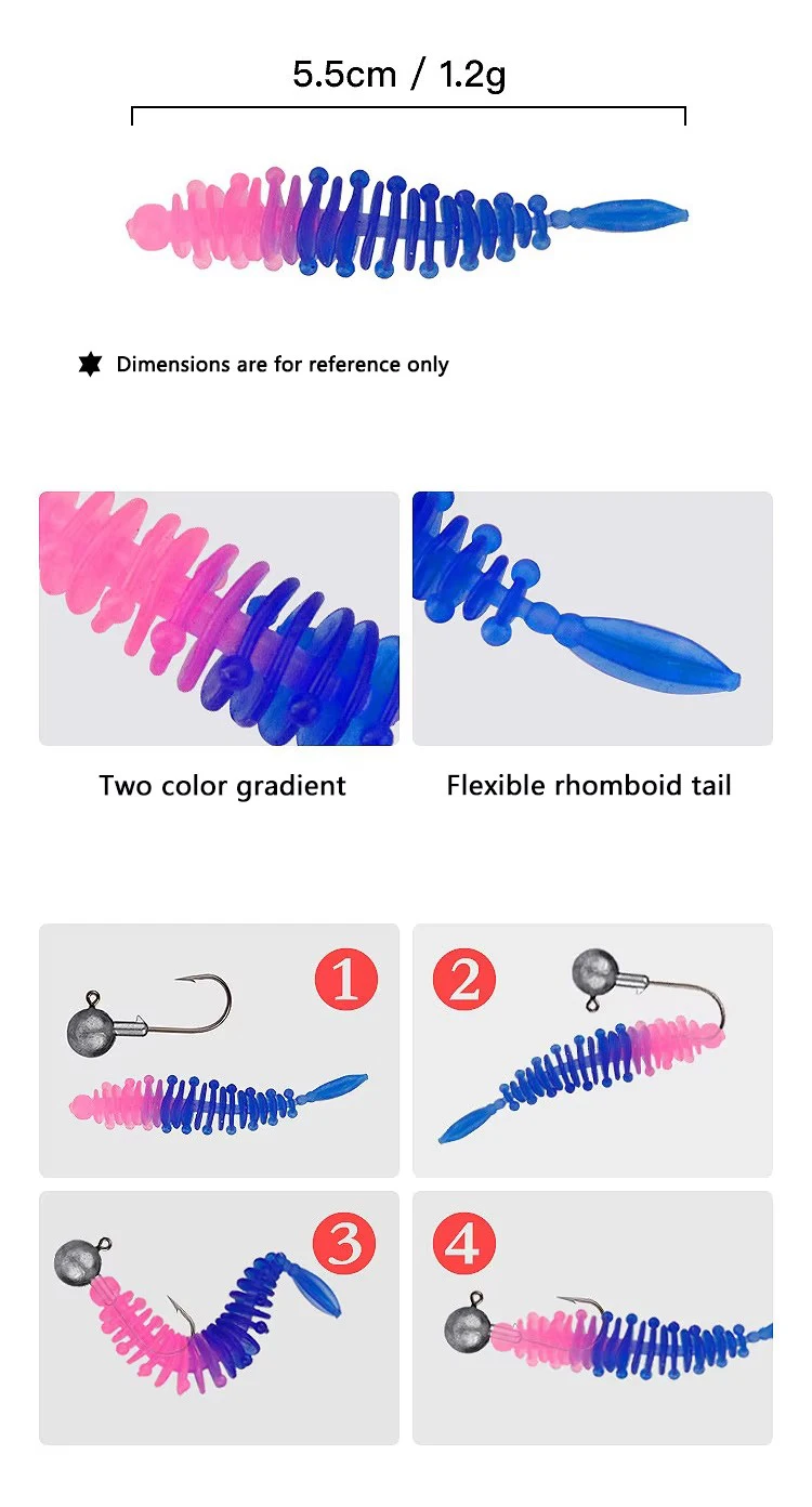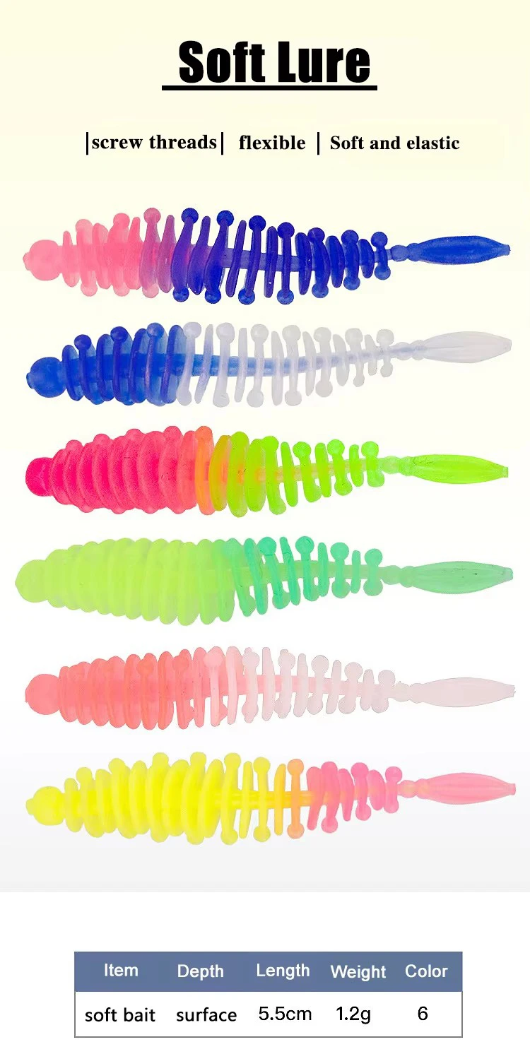 Señuelo de trucha suave para pesca, cebo de silicona Wobbler Swimbait Pesca, cebos de gusano artificiales, 5,5 cm, 1,2 g, material ecológico