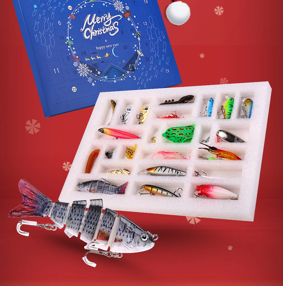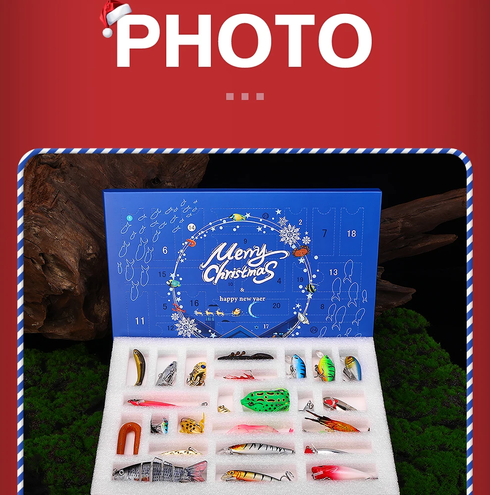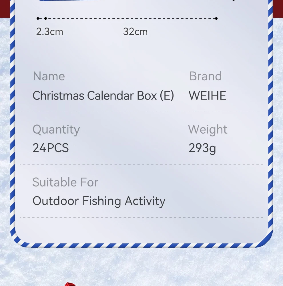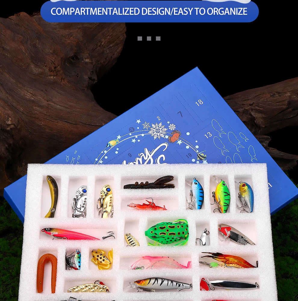 El juego de señuelos E con caja de regalo navideña Weihe de 24 piezas presenta un diseño de varias secciones que ofrece versatilidad para diversos escenarios de pesca.