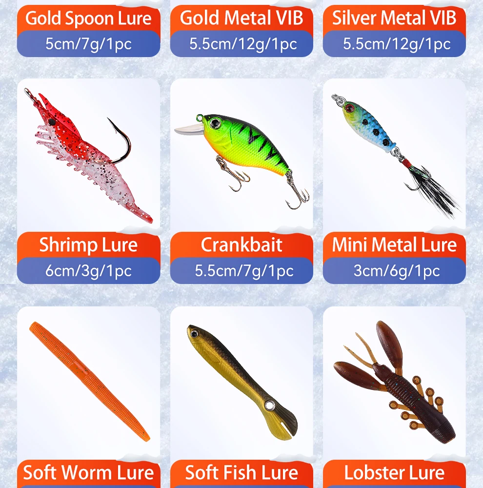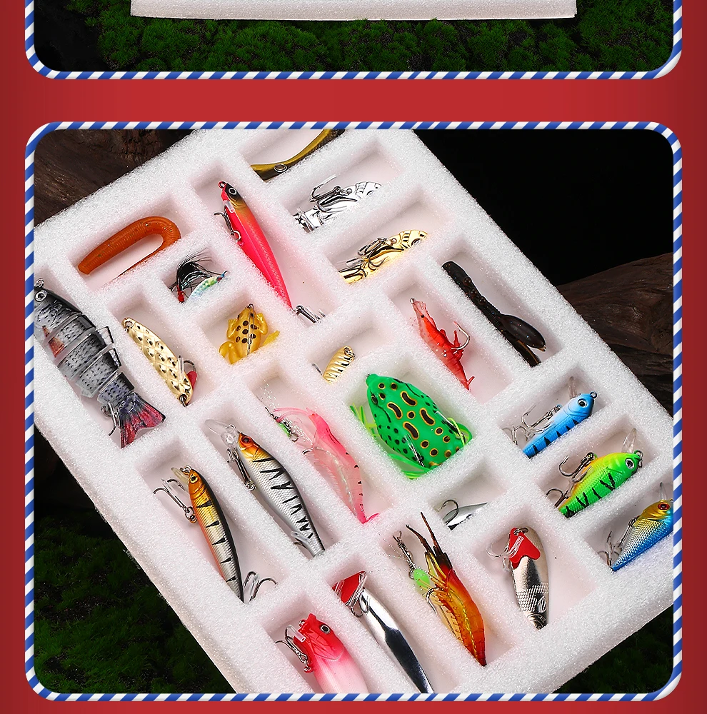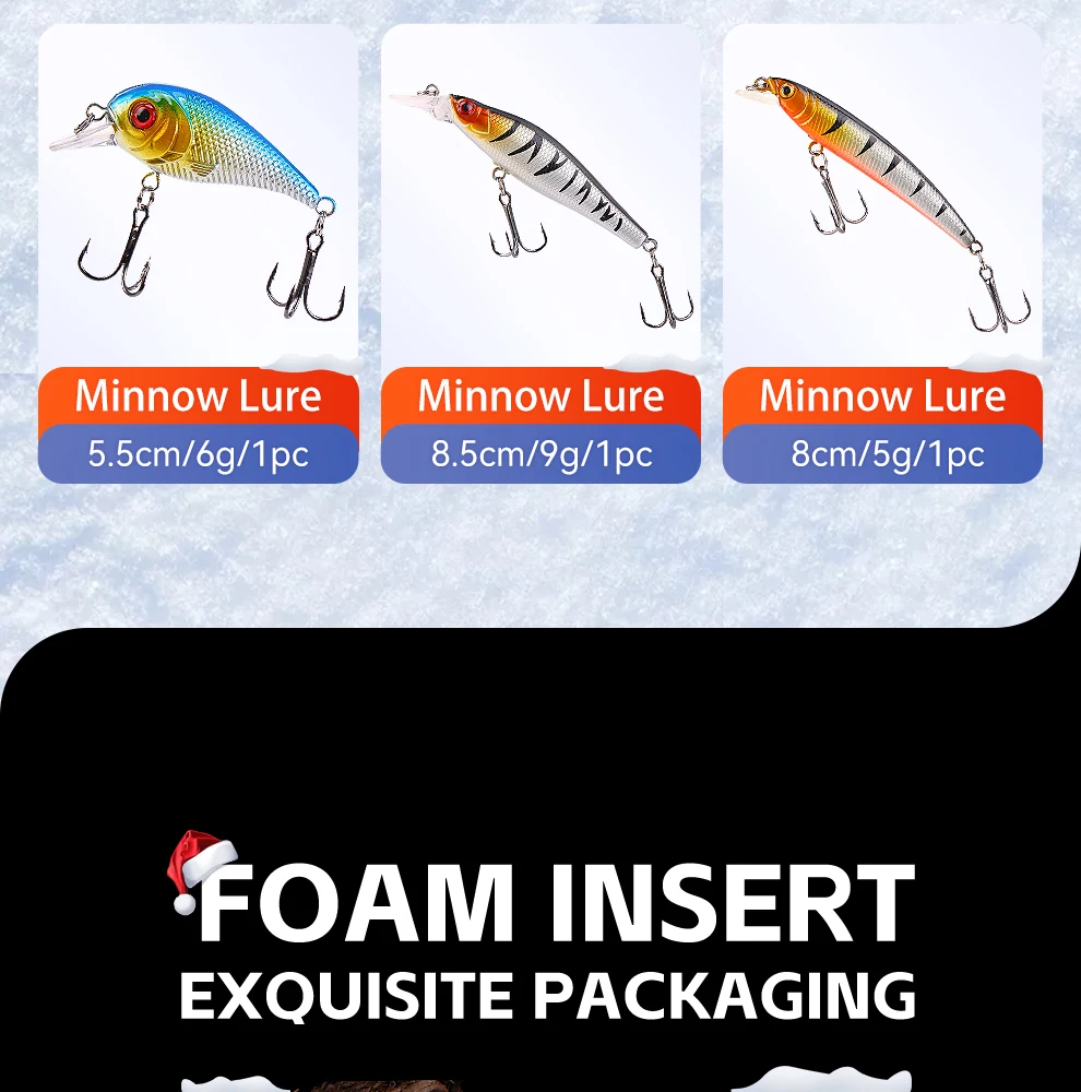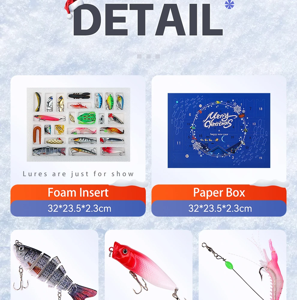 El juego de señuelos E con caja de regalo navideña Weihe de 24 piezas presenta un diseño de varias secciones que ofrece versatilidad para diversos escenarios de pesca.