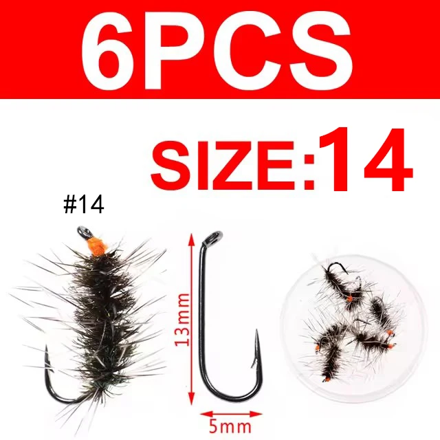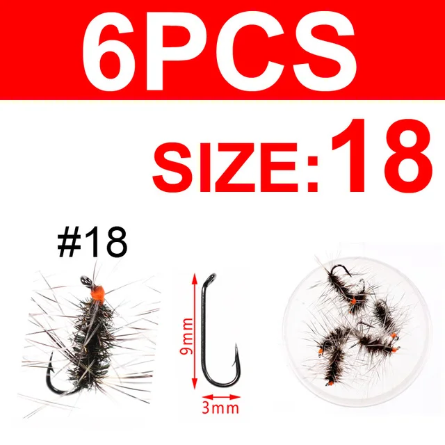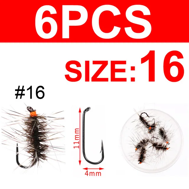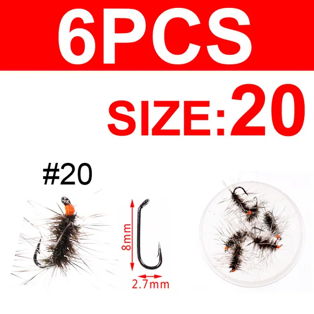 Wifreo 6 uds Griffith's Gnat Midge mosca seca trucha mosca pesca moscas cebo tamaño 14 16 18 20
