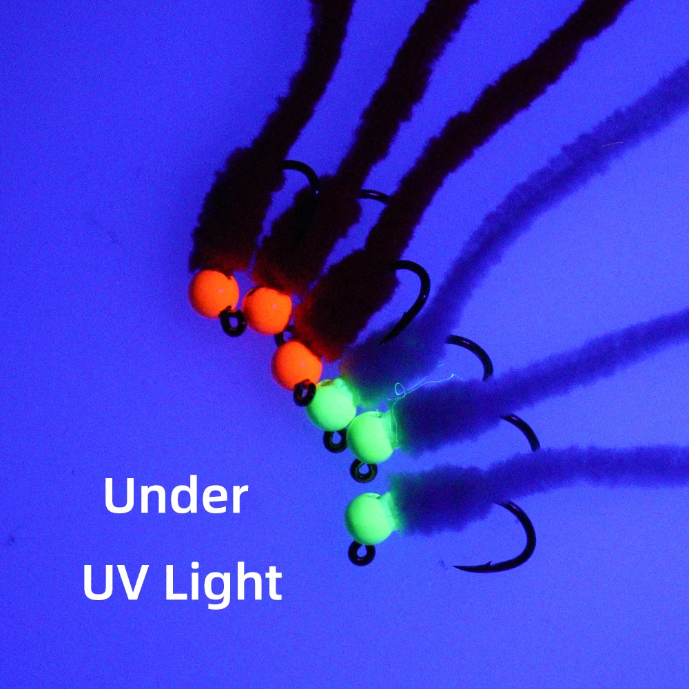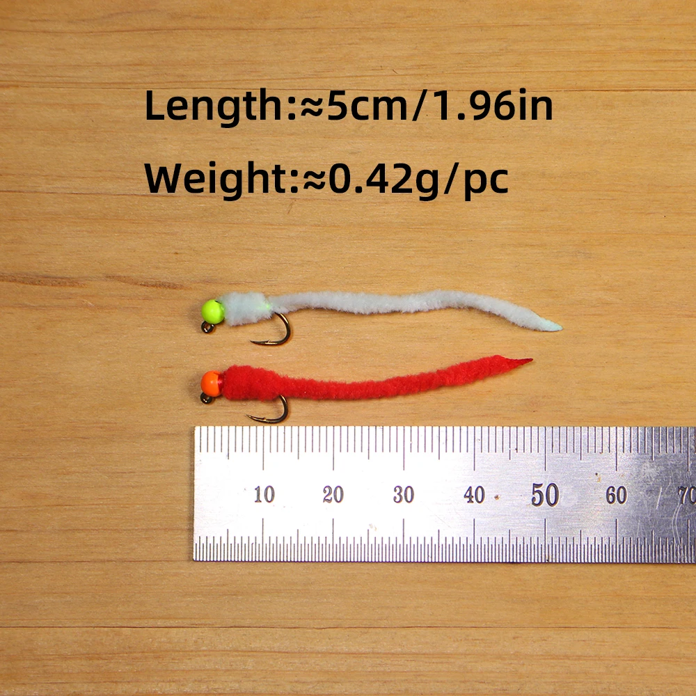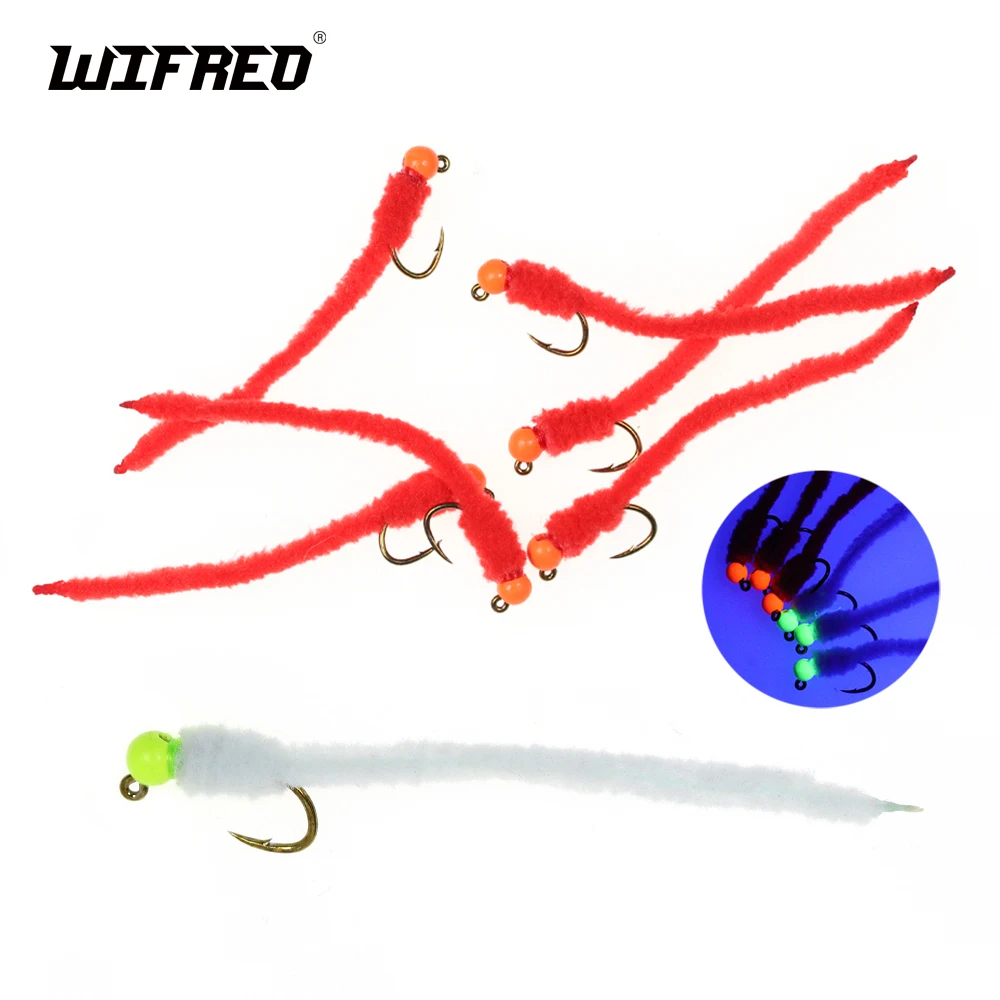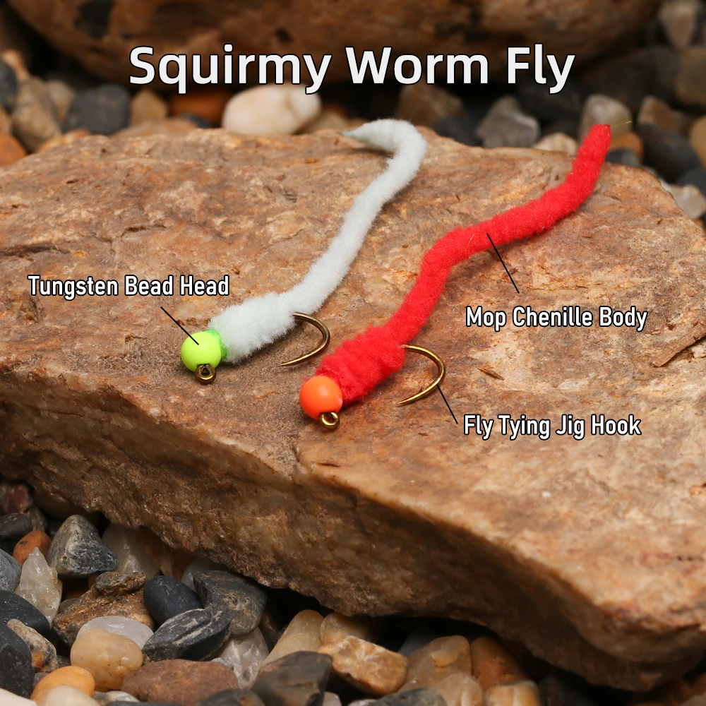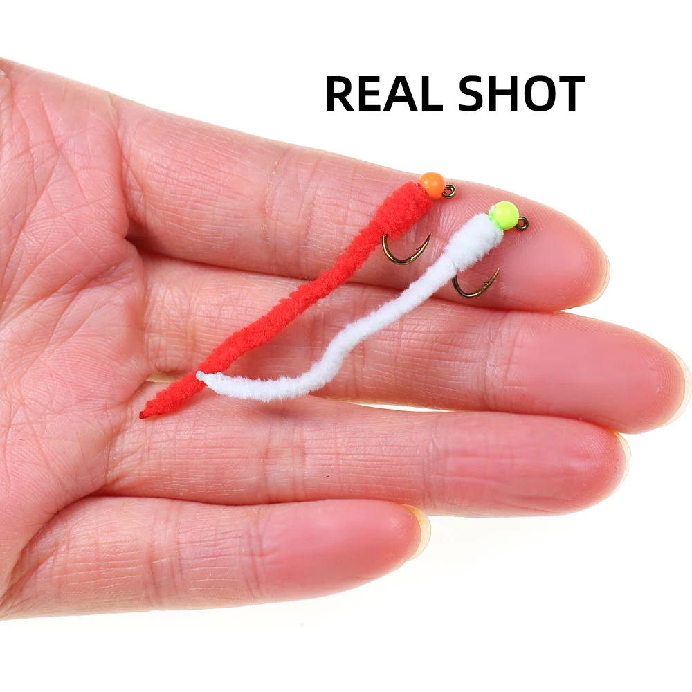 Wifreo 6 uds Squirmy Wormy Ninfa moscas cabeza de cuentas de tungsteno fregona cuerpo de chenilla San Juan gusano mosca trucha tipo pez señuelo de pesca