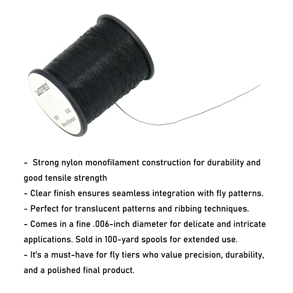 Wifreo 0,006 pulgadas monofilamento de pesca con mosca material de costilla de hilo para Caddis Midge Mayfly ninfas translúcido transparente y negro