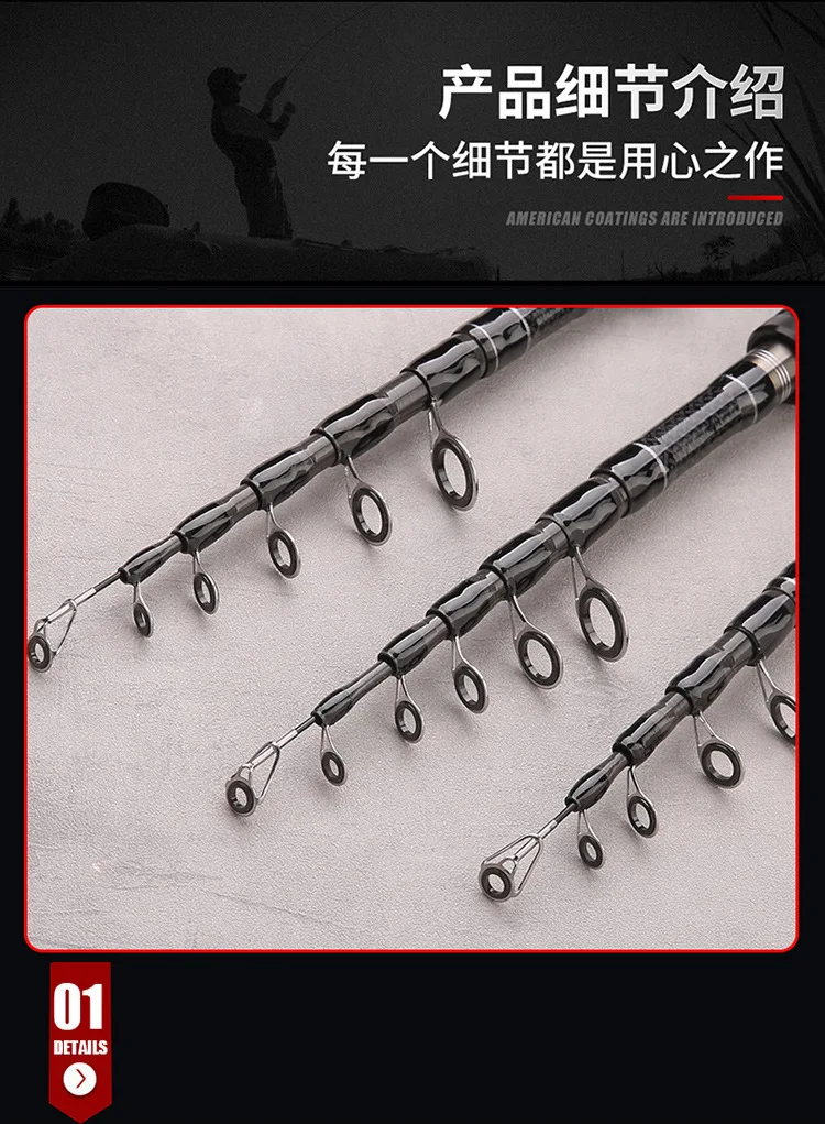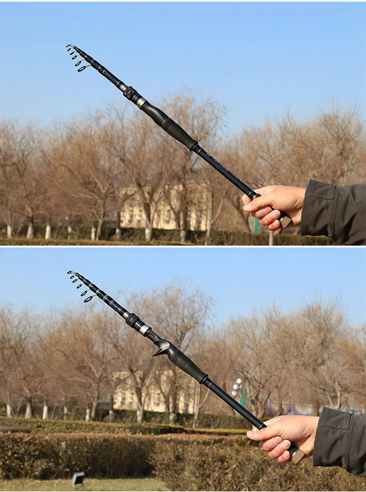 ZZ113 sección corta portátil 1,8 m 2,1 m 2,4 m 2,7 m 3m 3,3 m 3,6 m MH señuelo fundición telescópica caña de pescar giratoria fibra de carbono