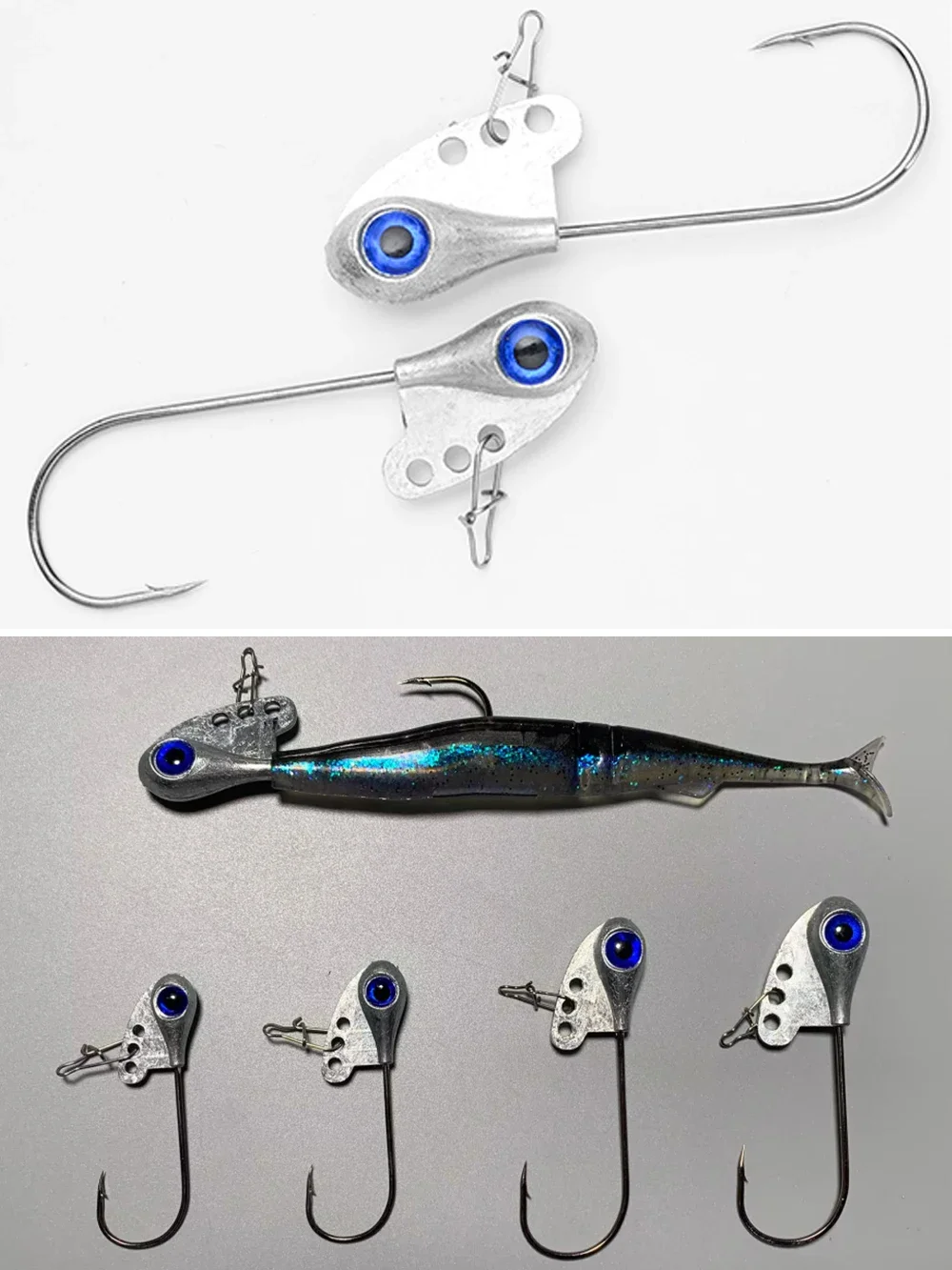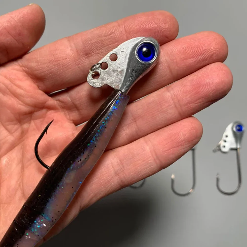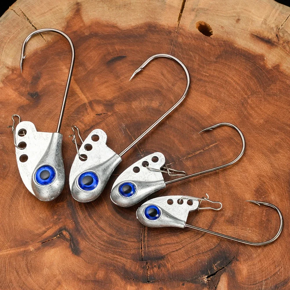 Actualización ambiental de aleación de zinc, anzuelos de pesca con cabeza de plantilla, manivela, anzuelo con púas, aparejos, atado de moscas de carpa, señuelo suave, accesorios de ojo de pez 3D, anzuelos
