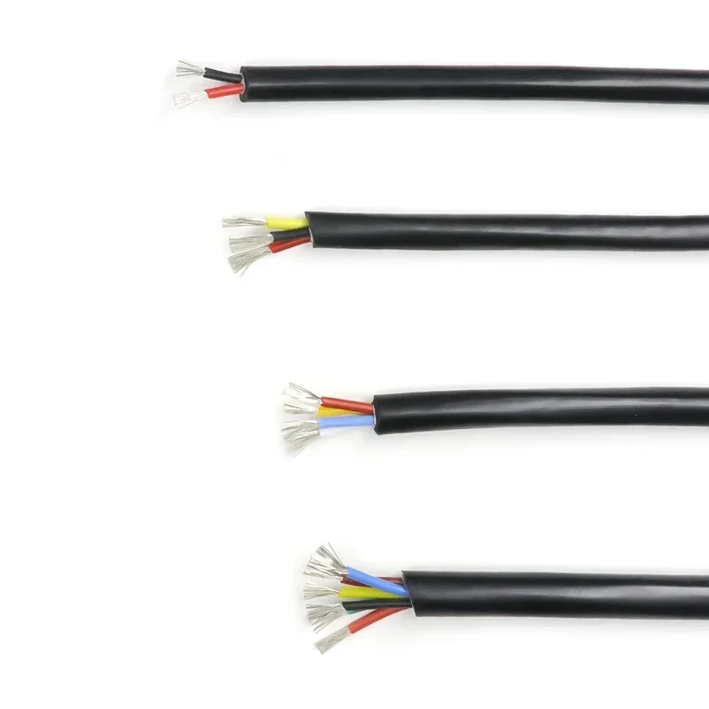 1 ~ 10m Cable de silicona Flexible negro cuadrado 0,3 0,5 0,75 1 1,5 2 2,5 4 6 mm x 2 3 4 6 núcleos Cable de alta temperatura de cobre estañado