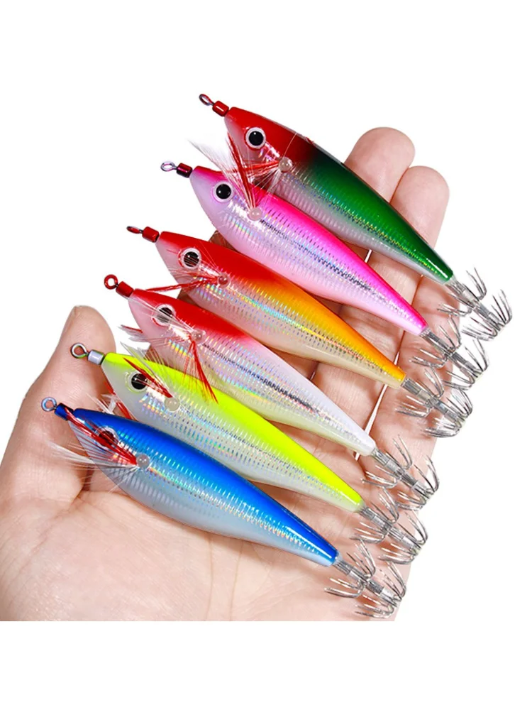 1/3/6 Uds 10CM 10G señuelo de pesca de camarones plantilla de calamar camarones de madera Artificial señuelos pesca anzuelo de calamar señuelos de sepia cebos de pulpo
