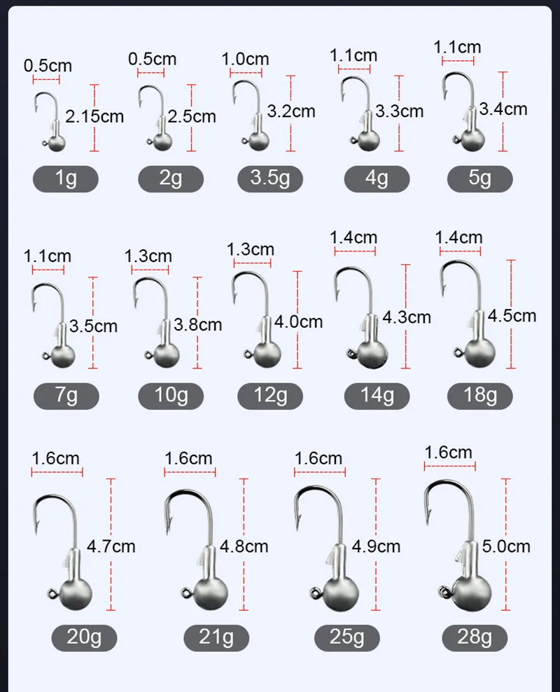 1/5 Uds 3,5g-21g manivela anzuelo con cabeza anzuelo de pesca cabeza plantilla señuelo cebo duro gusano suave Luya anzuelo anzuelo