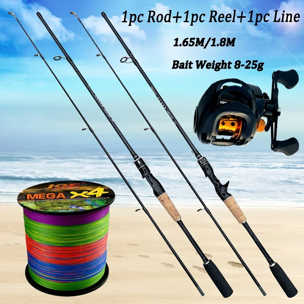 1,65/1,8 M Spinning Cast/canasta de pescado Combo 2 Secciones cebo Wt.Kit de pesca de carrete de pesca con relación de engranaje 7,2: 1, caña de carbono ultraligera de 8-25 g