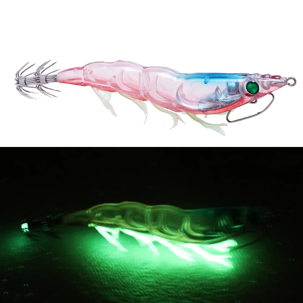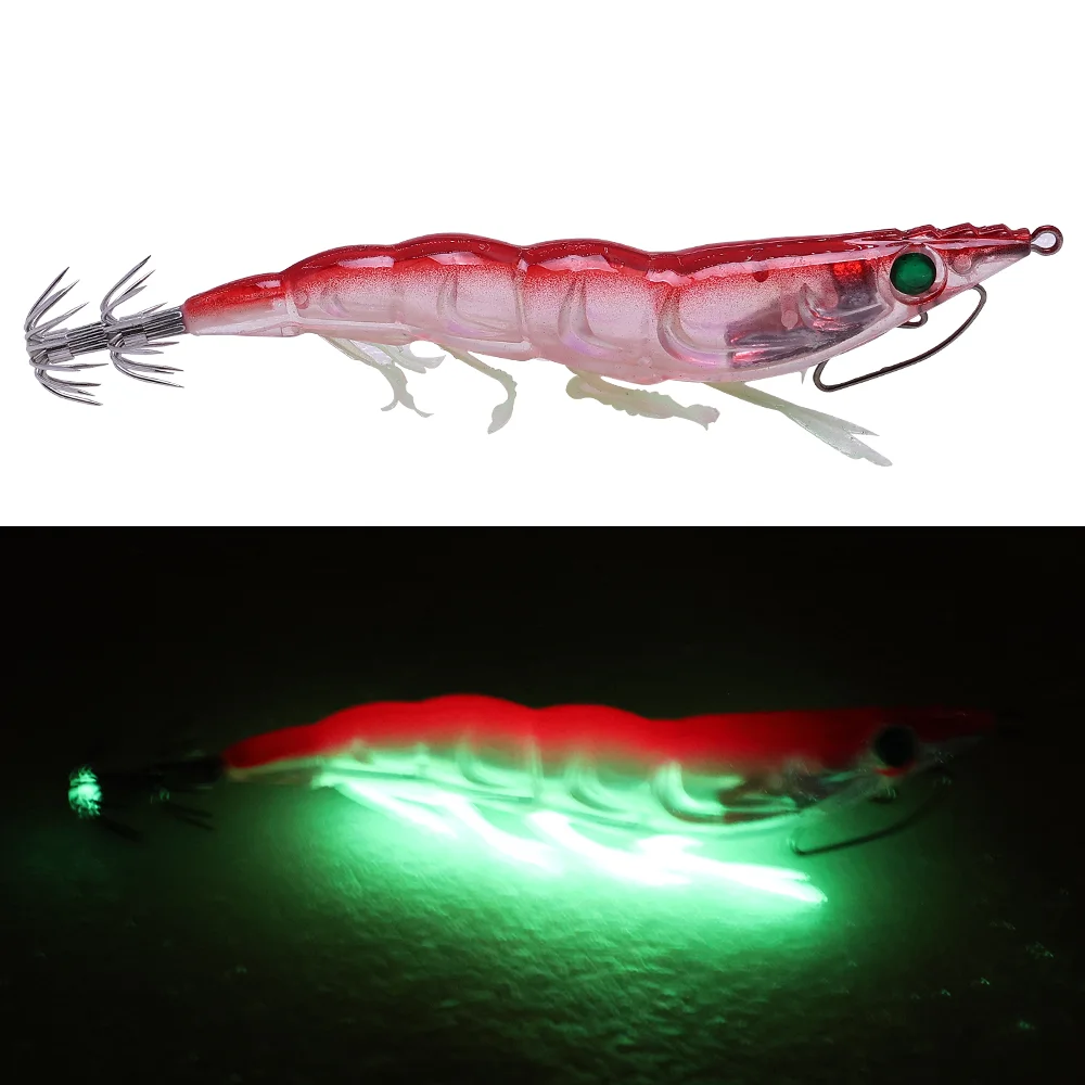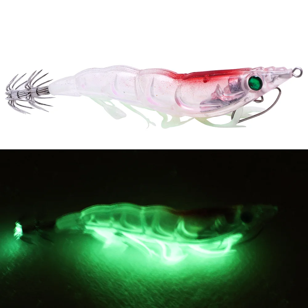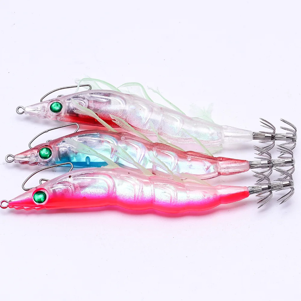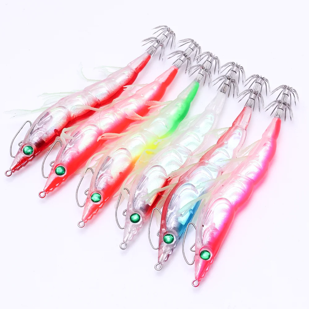 1 anzuelo de madera para calamar y camarones con cuentas que brillan en la oscuridad y con sonido, utilizado como accesorio de pesca para pesca en el mar