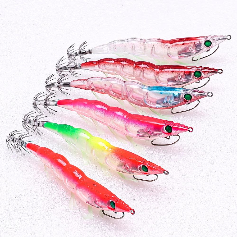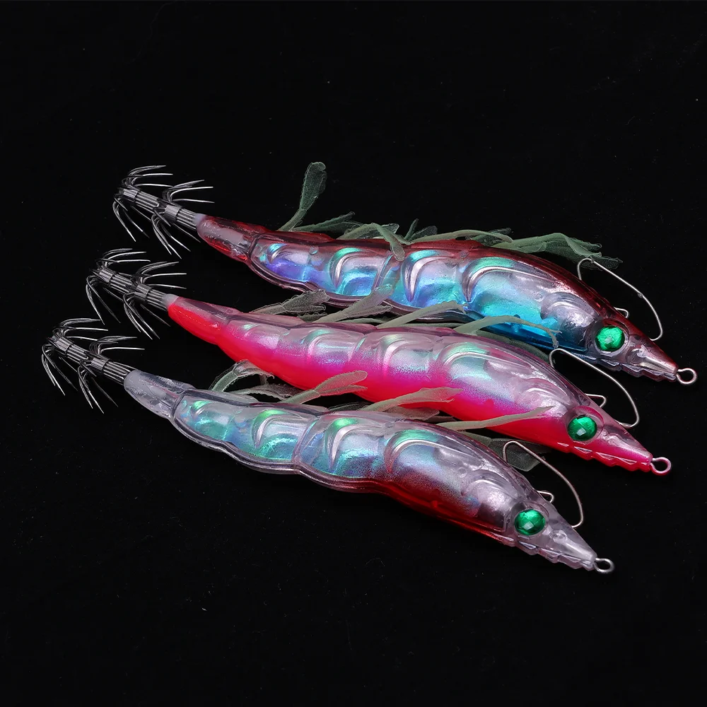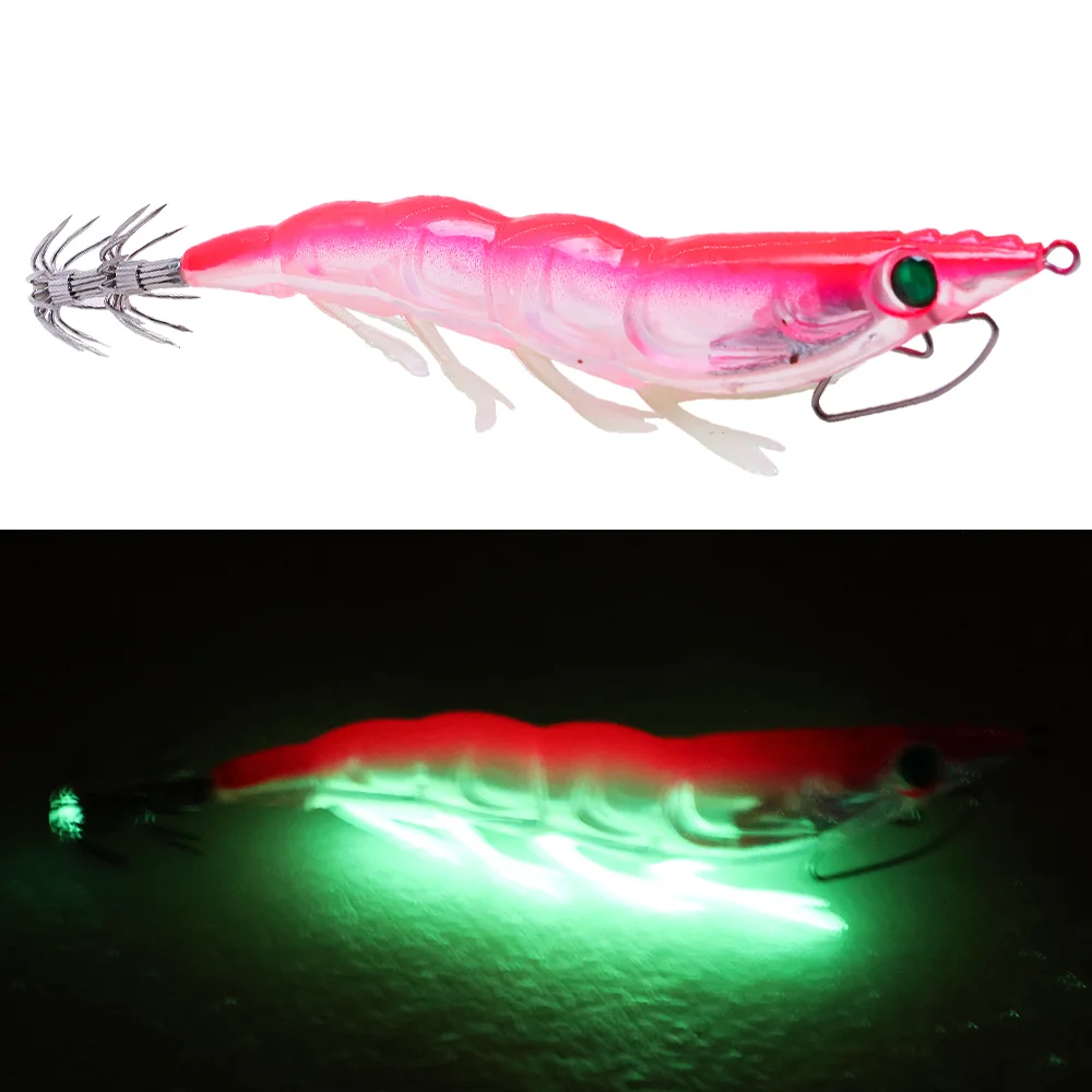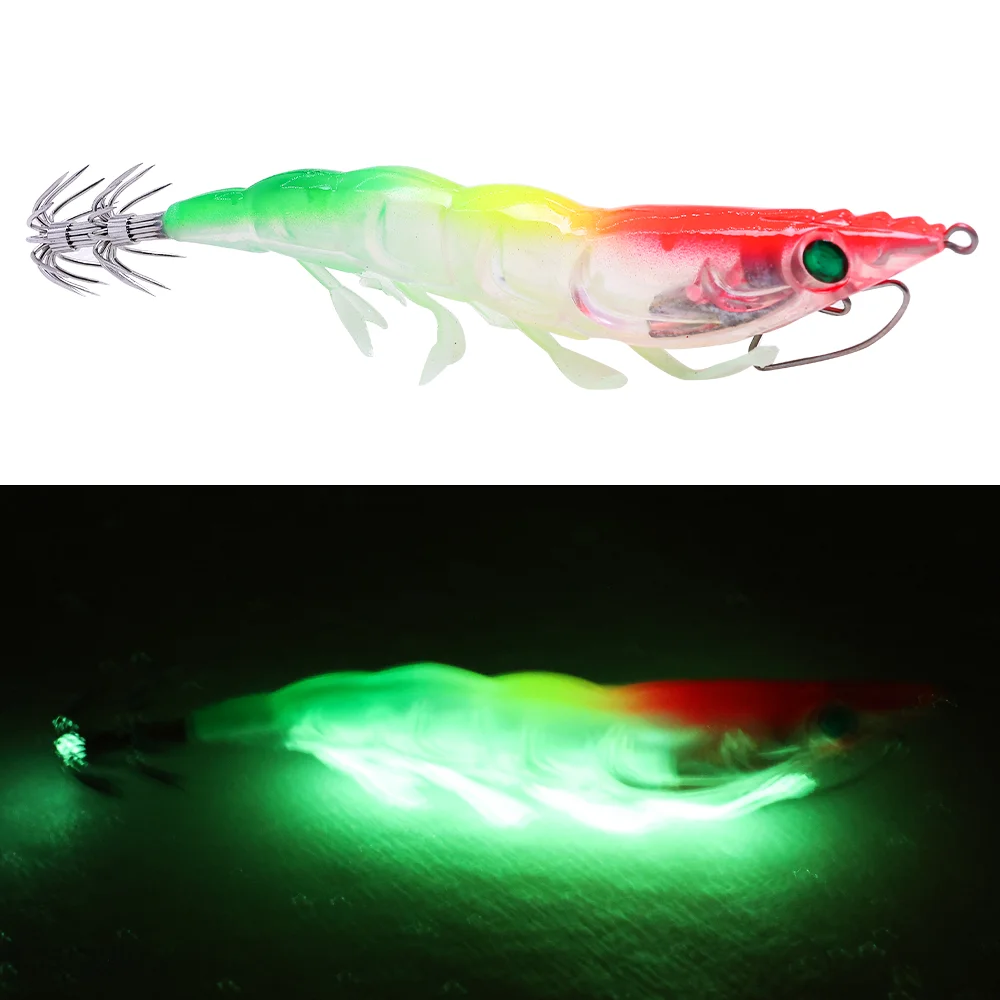 1 anzuelo de madera para calamar y camarones con cuentas que brillan en la oscuridad y con sonido, utilizado como accesorio de pesca para pesca en el mar