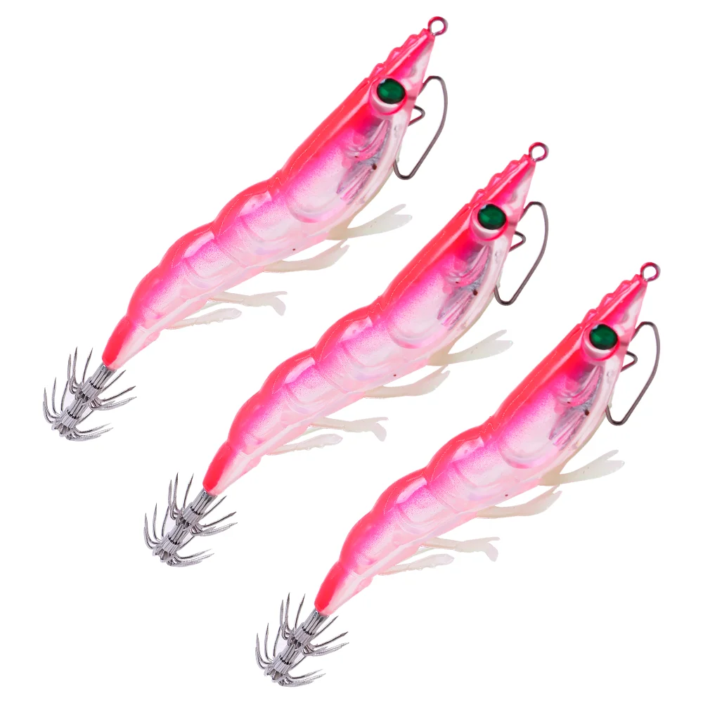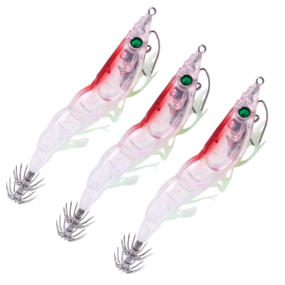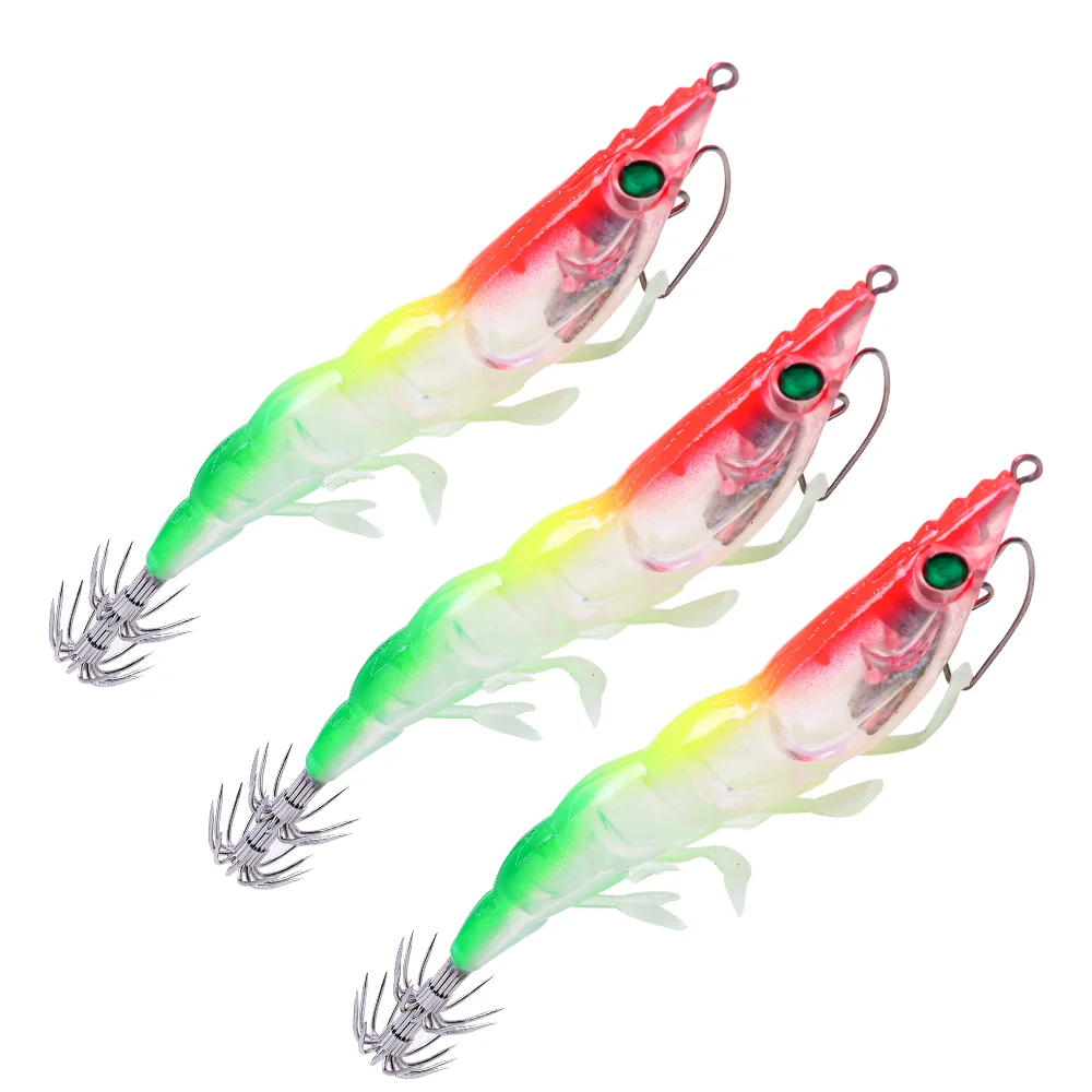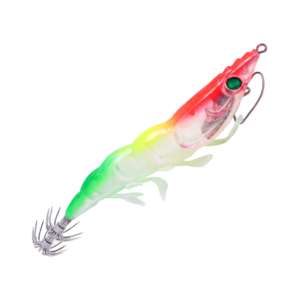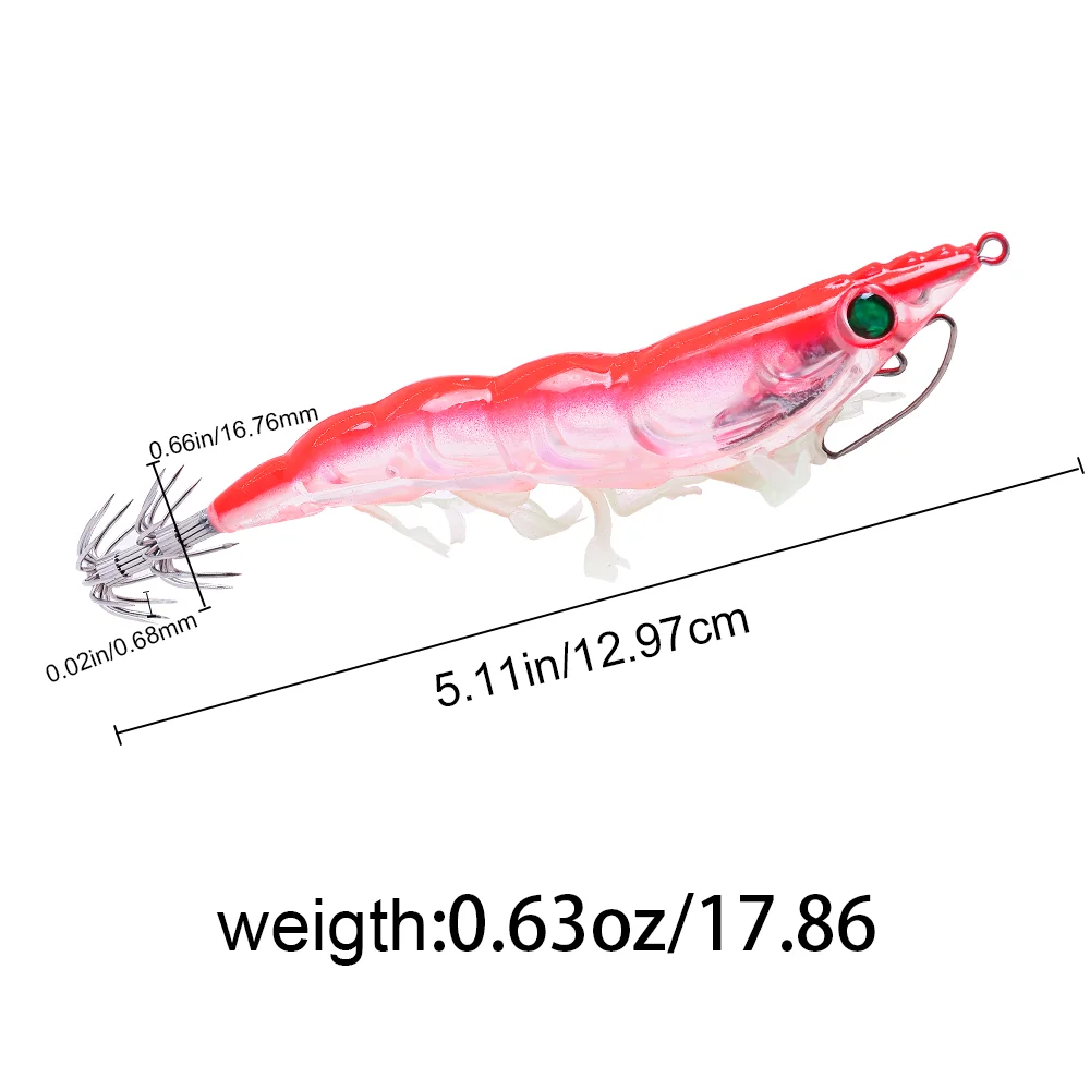 1 anzuelo de madera para calamar y camarones con cuentas que brillan en la oscuridad y con sonido, utilizado como accesorio de pesca para pesca en el mar