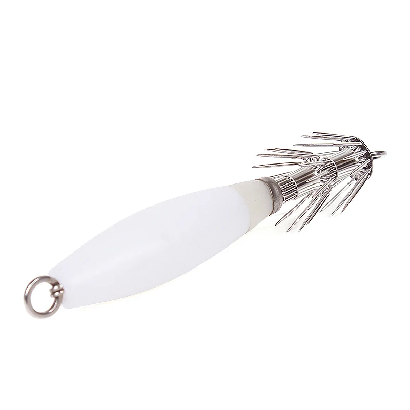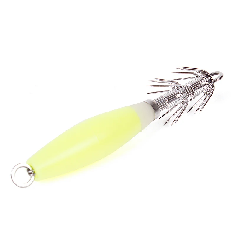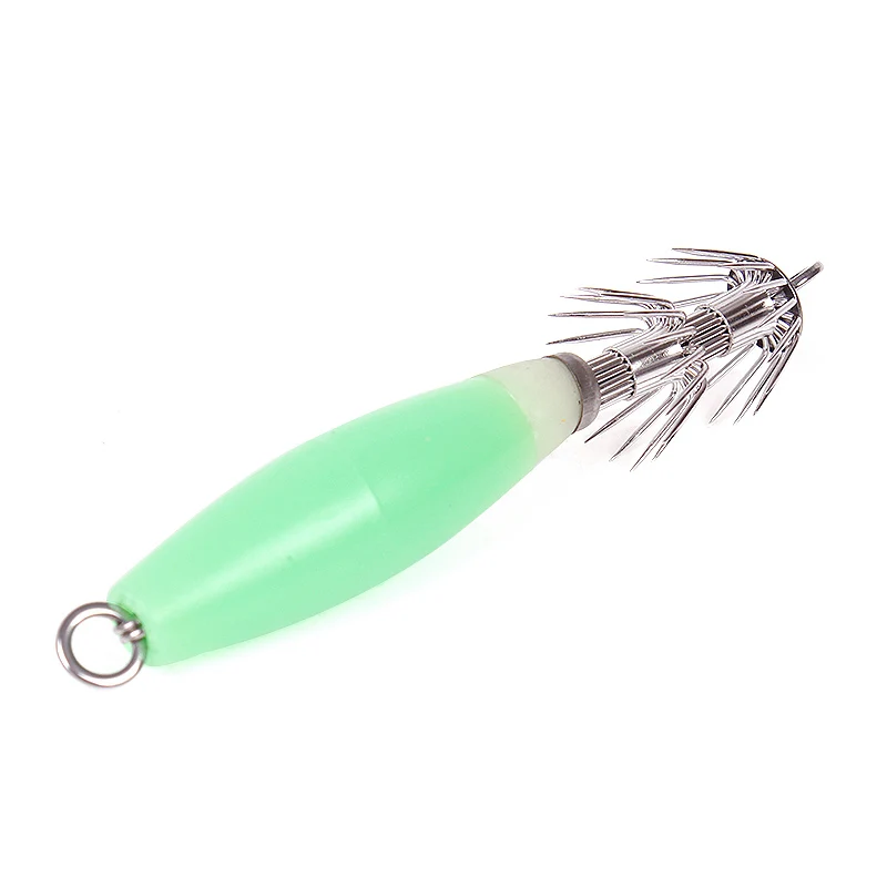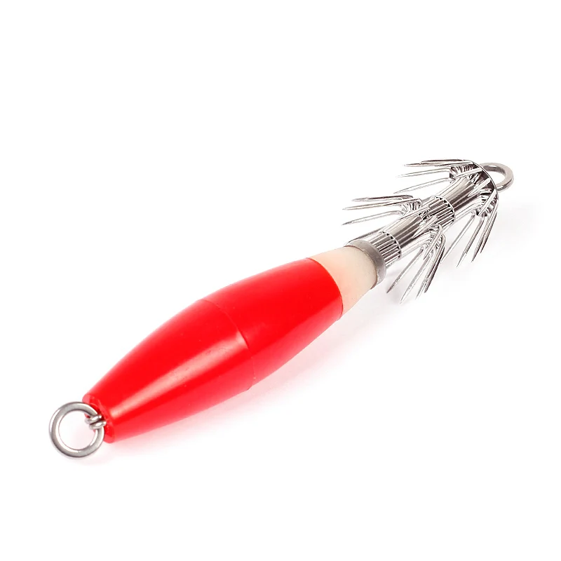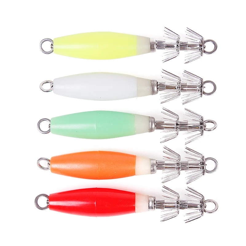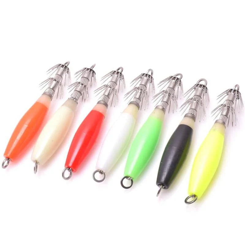 1 anzuelo de pesca en roca luminosa multicolor, anzuelo de calamar para pesca en el mar, anzuelo afilado de doble capa sin púas, con anillo de conexión