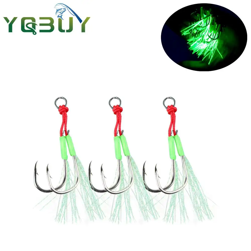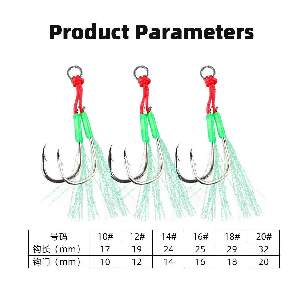 (1) Gancho de hierro doble luminoso, punta de anzuelo afilada, no es fácil de deformar, señuelo fuerte para peces.