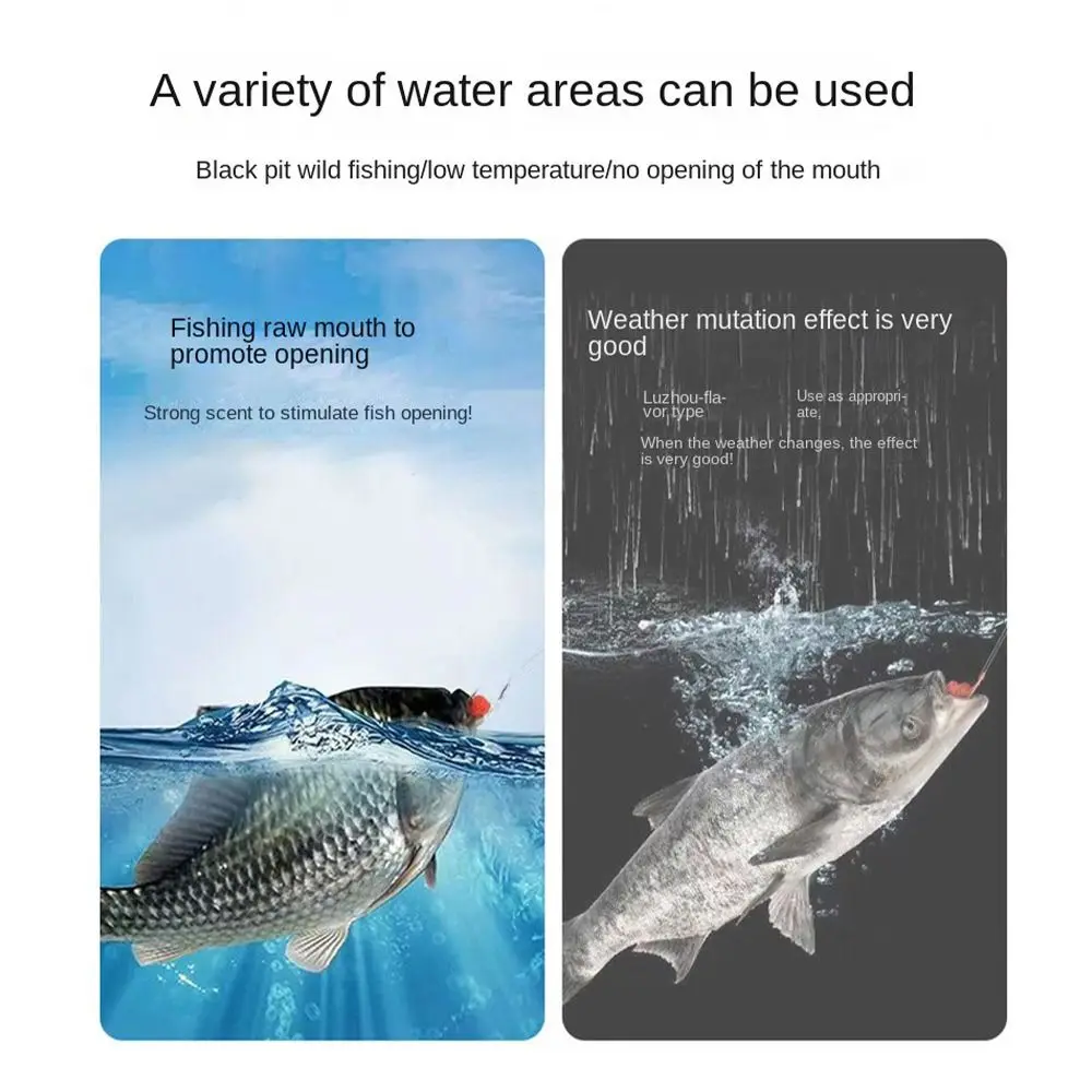 Suitable for various fishing scenarios: Fishing promoting agents are suitable for various fishing scenarios, whether it is freshwater or seawater fishing, whether it is fishing or Luya fishing, and can be used to improve fishing effectiveness.
