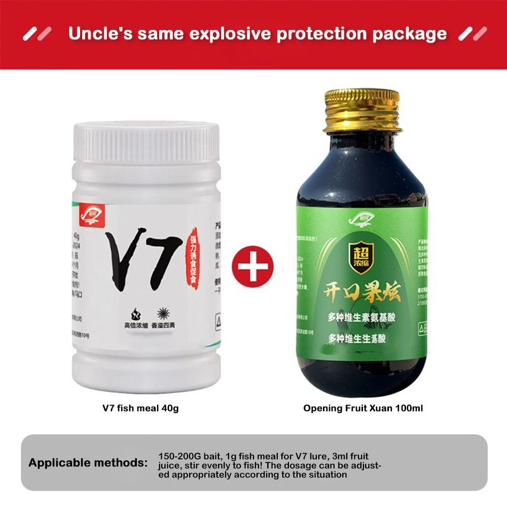 Quantity: 1bottle+1Bag Powder Strong Fish Attraction Effect: This fishing promoting agent contains fish hunger hormone, which can quickly increase fish appetite and improve the success rate of fishing. Using this food promoting agent can attract more fish to actively approach the bait