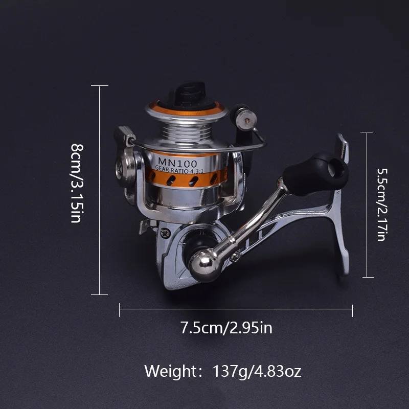 1 carrete de pesca totalmente metálico de acero inoxidable con una relación de transmisión de 4,3: 1, carrete giratorio ligero