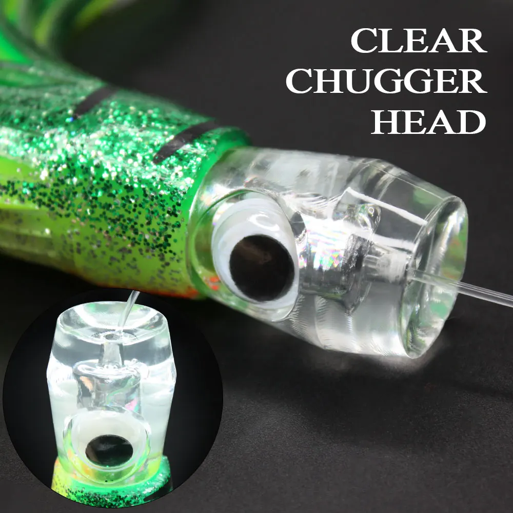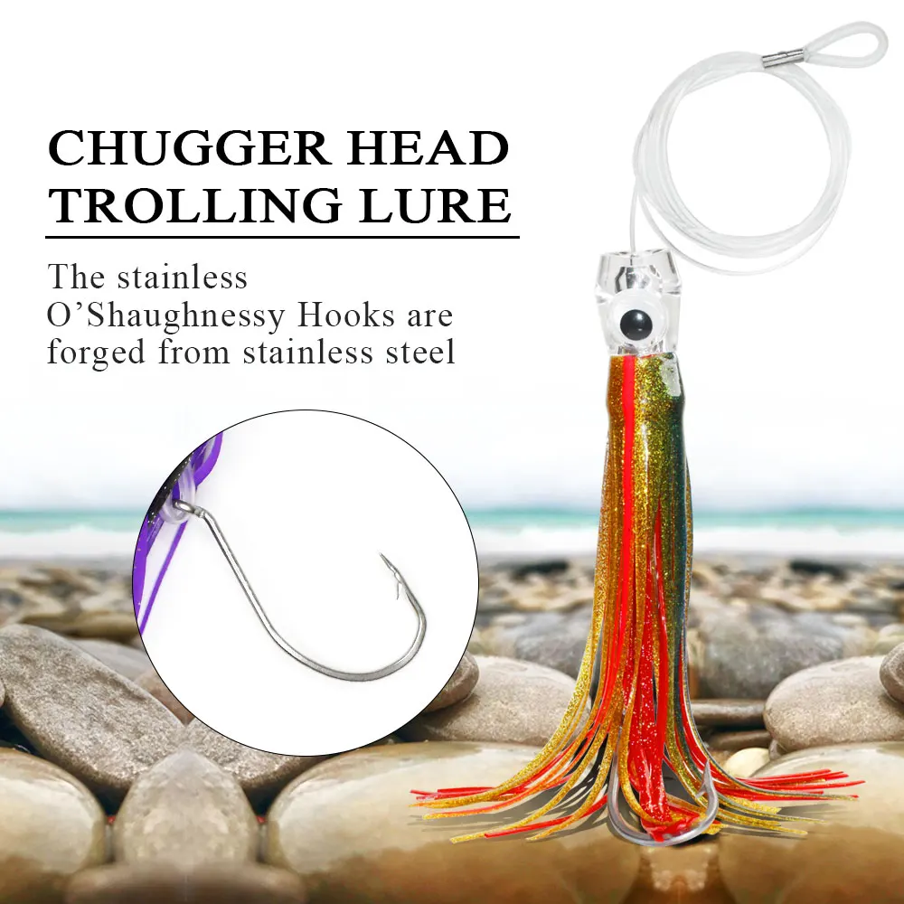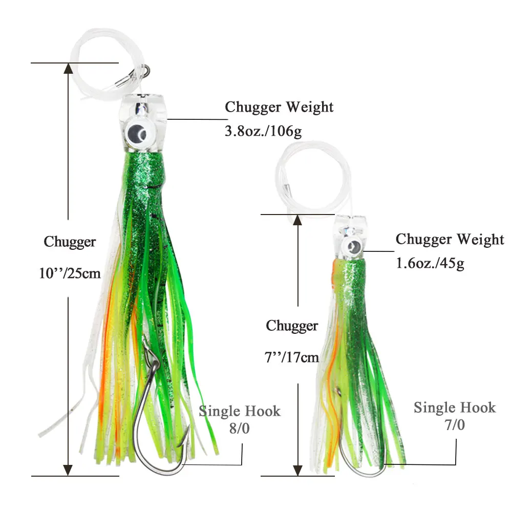 1 cebo de calamar acrílico de pesca de fibra reflectante, que incluye sedal y anzuelo duraderos, disponible en dos tamaños y siete colores.