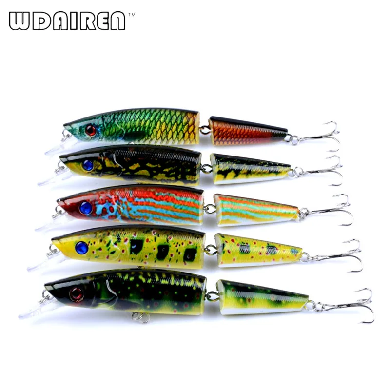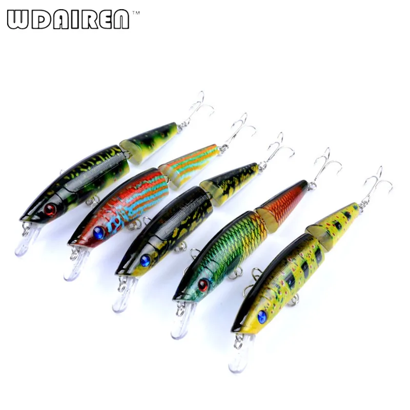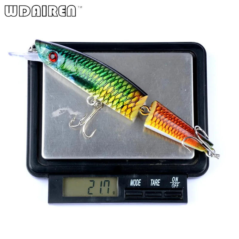 1 Uds 14cm 21,7g cebo duro Wobblers pesca Artificial pintura realista señuelo 2 Segmento cebo 4# gancho 5 colores ojos 3D FA-429