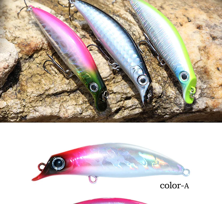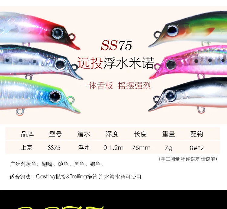 1 cebo duro para pesca en agua salada, 75mm, 7g, pececillo flotante, Wobbler, lubina, Leurre Isca, pesca Artificial