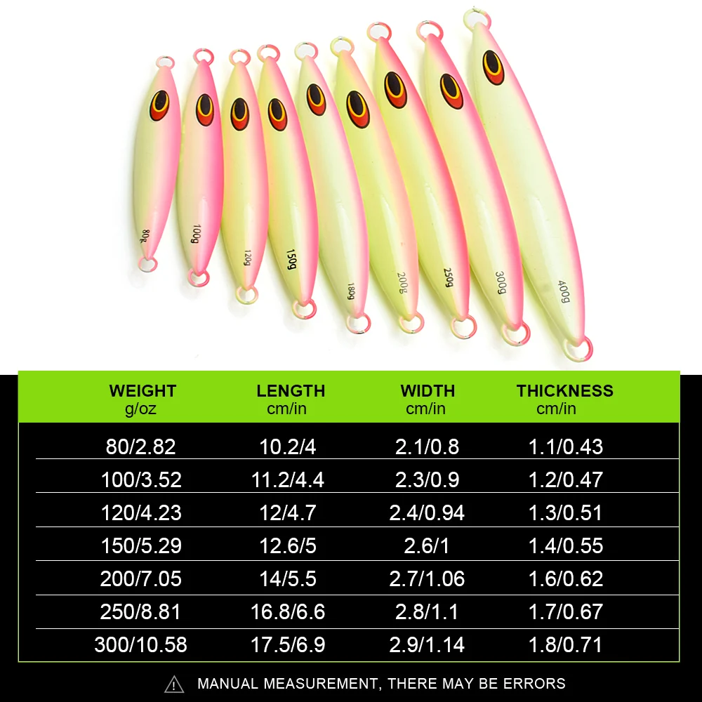 1 cebo de hierro para pesca, cebo de simulación de metal de vibración lenta, plantilla de metal grande luminosa, varios modelos y colores de 80g a 400g