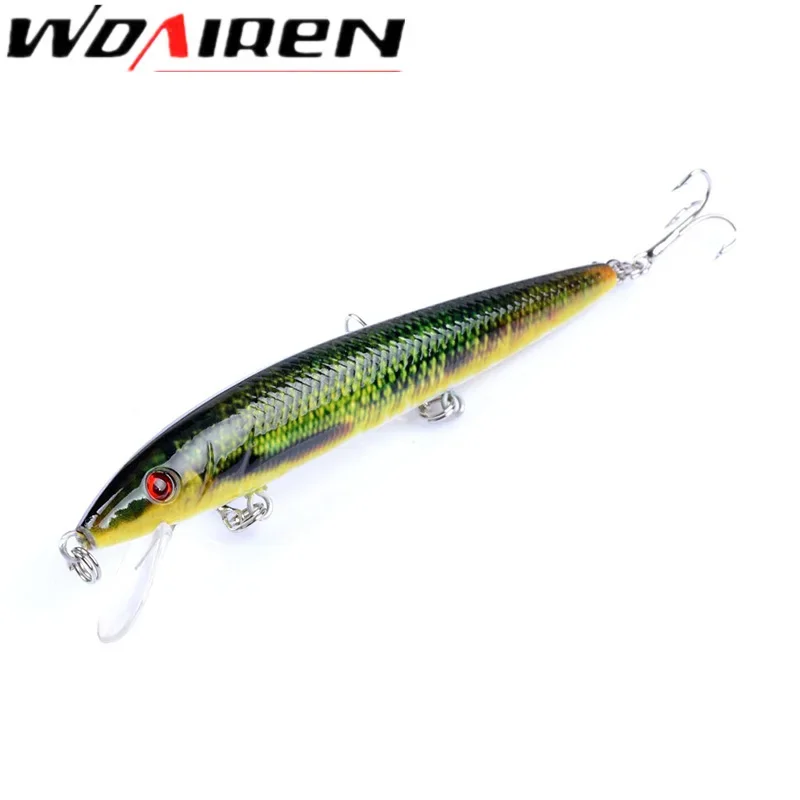 WDAIREN cebo de pesca flotante Jerkbait Minnow 12cm/13,5g señuelo de pesca señuelo duro cebo Artificial plástico Wobble señuelo pesca Marca: WDAIREN Longitud: 12 cm/4,72 pulgadas Peso: 13,5 g/0,476 oz Profundidad de buceo: 0,5-1,8 m is_customized: sí Tipo: señuelo Minnow Color: 4 colores Material: plástico ABS verde Ganchos de calidad: 3 ganchos fuertes. Peixe objetivo: chub pálido, lubina, picos, carpa de control amarillo, perca china, culter de boca superior Paquete: bolsa OPP perfecta