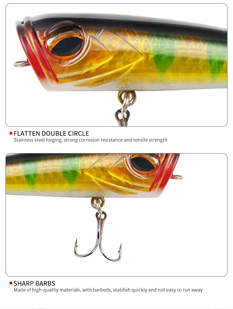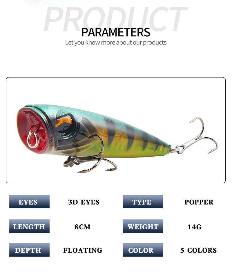 1 cebo Popper, 8cm / 14g, Señuelos de pesca de superficie, cebo duro, Wobblers artificiales, Flotante de plástico, Aparejos de pesca, Crankbaits Isca