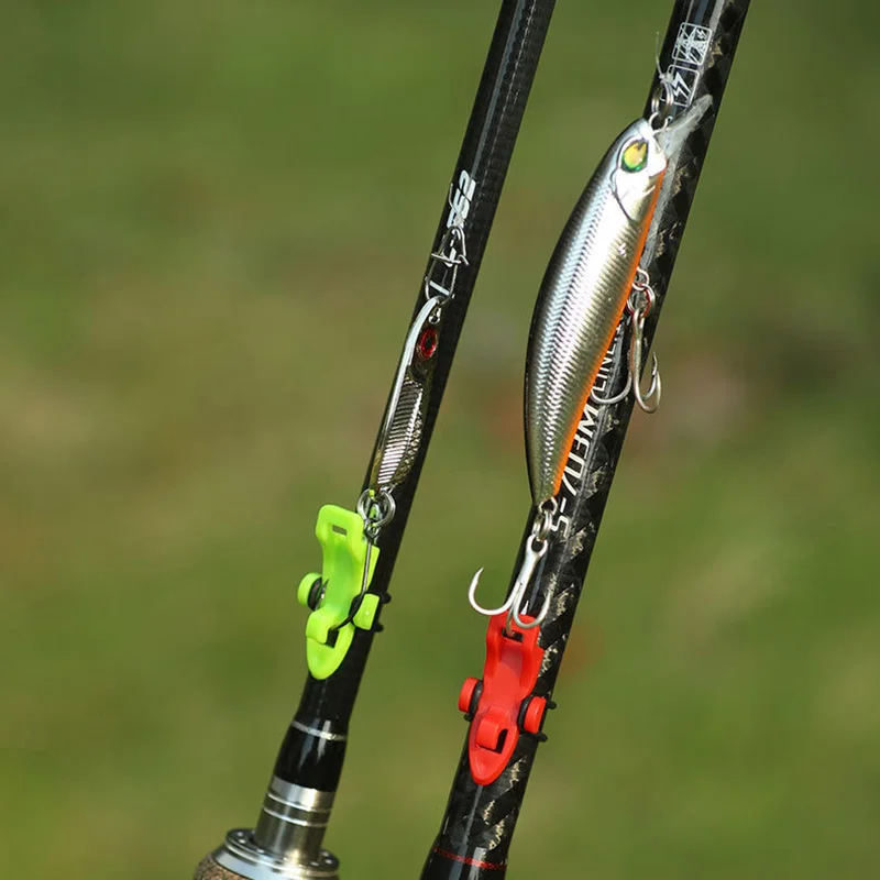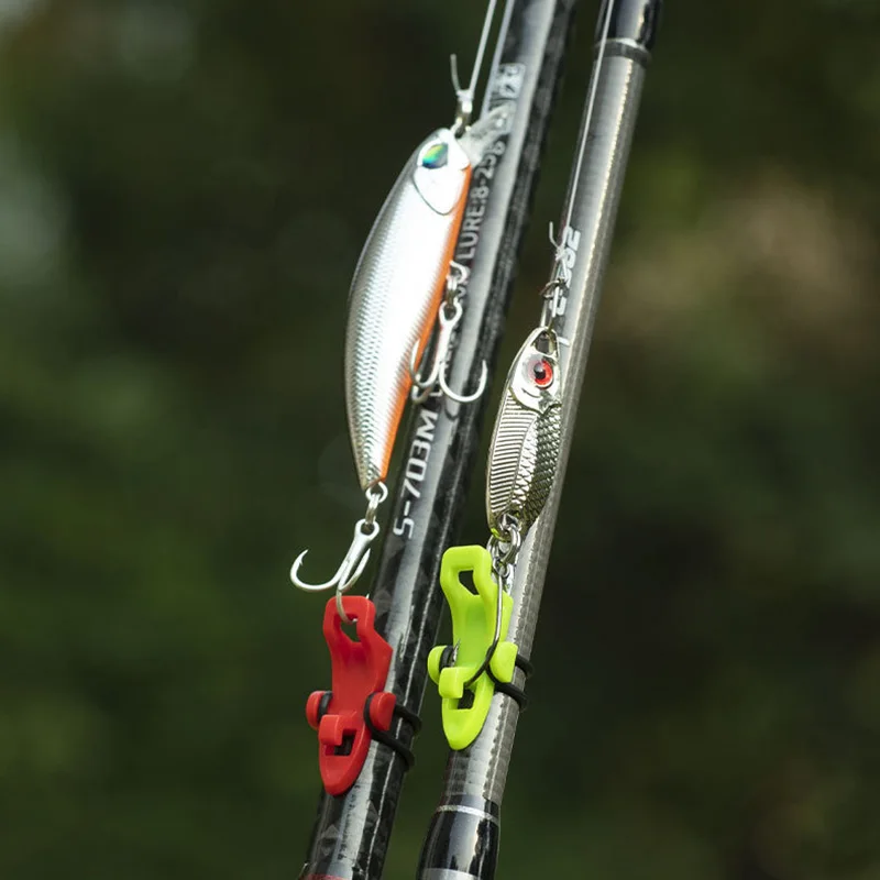 Anzuelo de pesca de plástico, soporte de seguridad para cebo con 3 anillos de goma para caña de pescar, aparejos de pesca