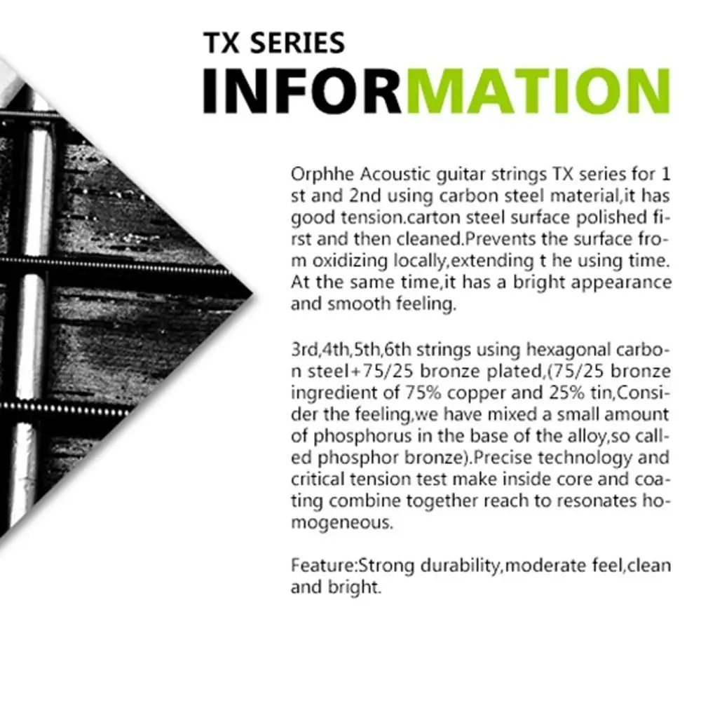 he strings of ORPHEE TX series has strong durability, tone loud and feeling comfortable. MODEL NOTE E B G D A E
