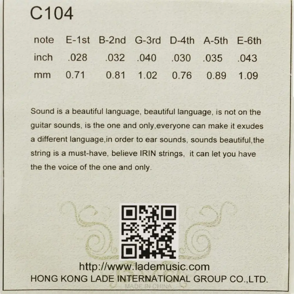 1.C104 classical guitar string, moderate string tension, full resonance, soft tone and strong penetrating power.