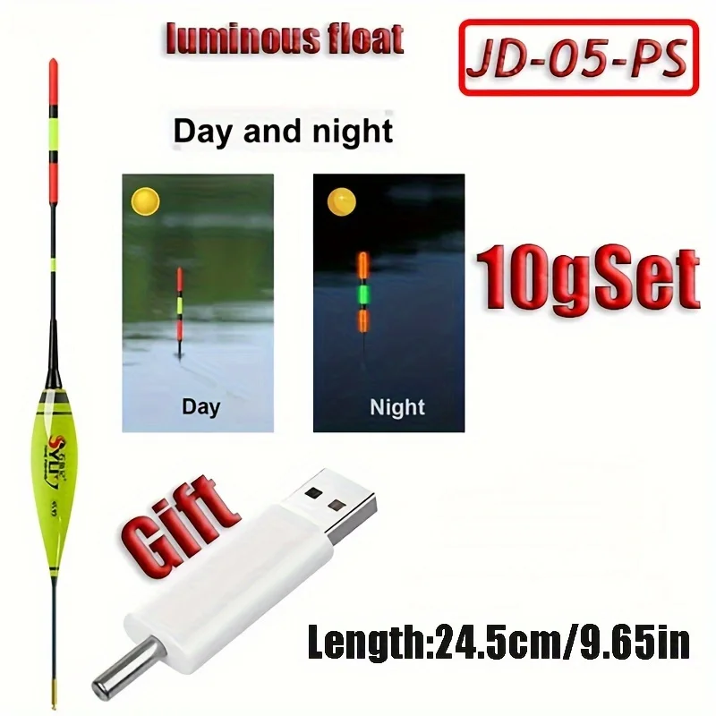 1 Juego (flotador X1 + juego de carga de un solo orificio X1) flotador electrónico recargable Led luminoso boya de pesca nocturna juego de herramientas de pesca