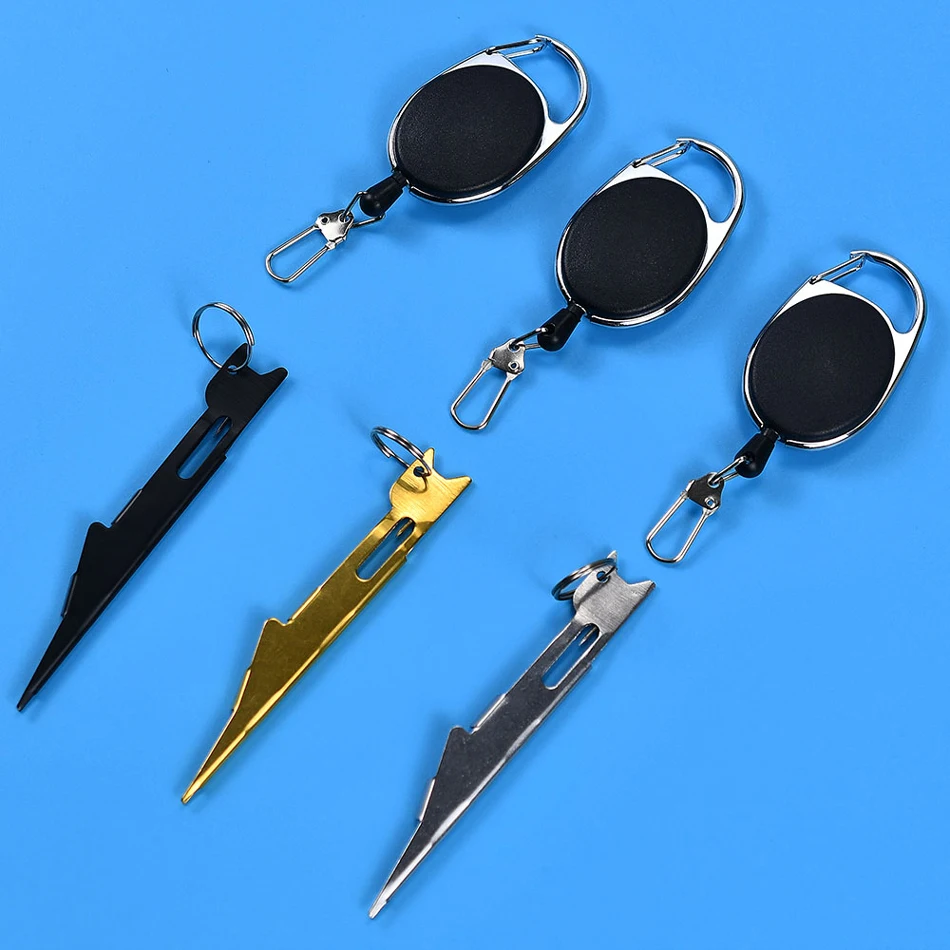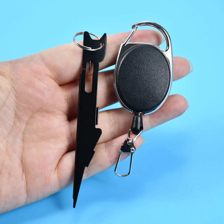 1 Juego de llavero retráctil, herramienta para atar nudos, línea de pesca plateada, Tyer con gancho, limpiador de ojos, engranaje rápido para peces, removedor de anzuelos